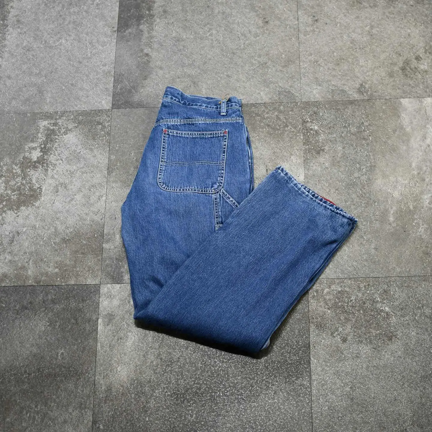 SIZE:G ウエスト79cm 総丈102cm 股下78cm わたり34cm 裾幅24cm fabric/cotton 着用画像 173cm/56kg デニムの中でも変わり種、かつA/Wに特化した 個体がこちら。 上はアウターを着れば暖かいですが、ボトムスは 正直なところ限界を感じることもしばしば... そんな中こちらは、裏地がフリースで暖かく、 カラーは赤という気の利いた1本。 ロールアップでアクセントとして遊んでも、 ぼてっとしたワイドなシルエットを そのまま楽しんでも、良い塩梅で新鮮味を 味わえるのではないでしょうか。 それでいてデイリーユース出来る "デニム"というカテゴリーで 紹介出来るのが嬉しい... ※裾上げ等のレングス直しにつきましては、 購入前に、必ずご連絡お願い致します。 ※撮影状況により、実物と多少色が異なる 場合がございます。 ※古着を取り扱っているため、気づかない汚れや ほつれがある場合がございます。 ※サイズは着用感で選んでおり、 表記サイズは説明欄の最初に記載しております。 old vintage ヴィンテージ used 80's 90's アメリカ古着 ユーロ古着 POLO RALPH LAUREN Eddie Bauer OLD GAP LANDS' END ランズエンド LLBean エルエルビーン オールドギャップ エディーバウアー ラルフローレン ブルックスブラザーズ Brooks Brothers デニム 青 ブルー などがお好きな方 #vintage #used #90s #80s #古着 #ヴィンテージ #LLBean #エルエルビーン #EddieBauer #エディーバウアー #oldgap #オールドギャップ #LANDSEND #ランズエンド #NAUTICA #ノーティカ #ラルフローレン #POLORALPHLAUREN #ペインターパンツ #ワイドパンツ #デニム #デニムパンツ