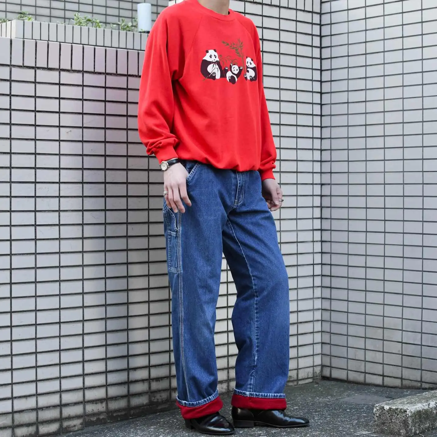 古着 親子 パンダ プリントスウェット トレーナー アニマルスウェット 赤