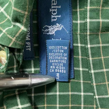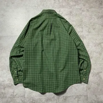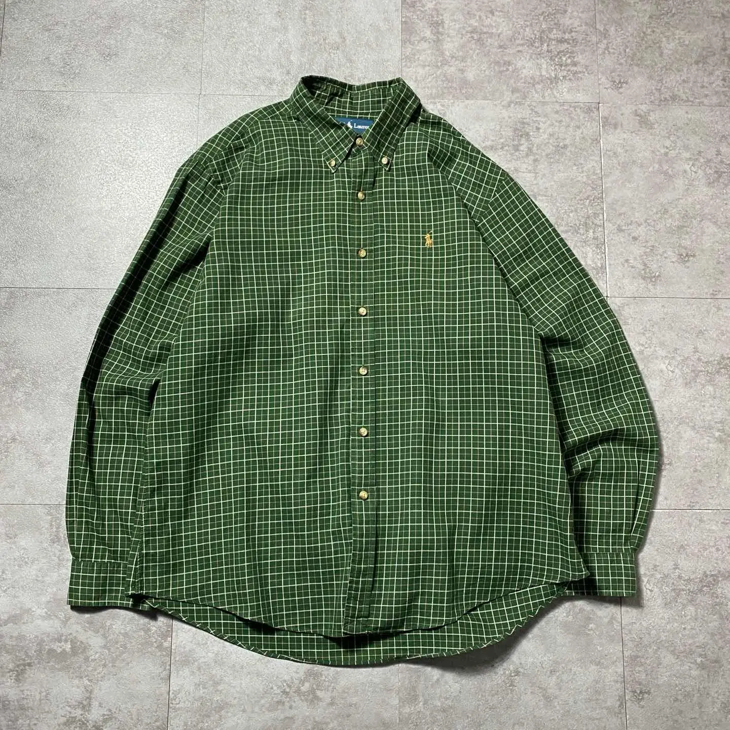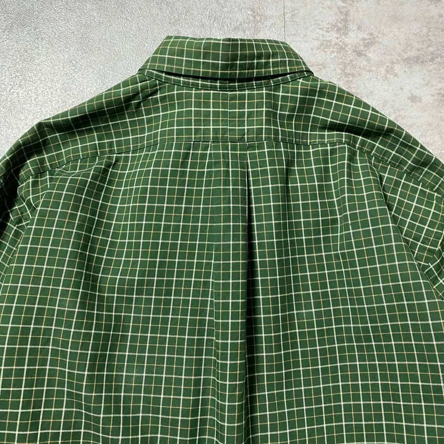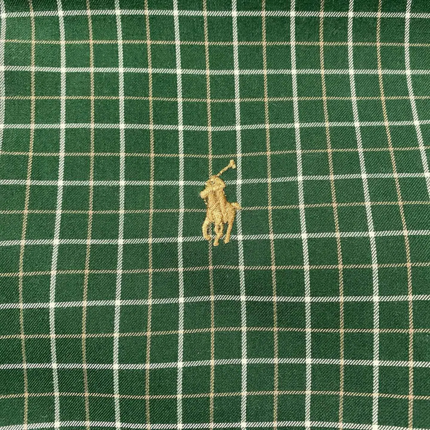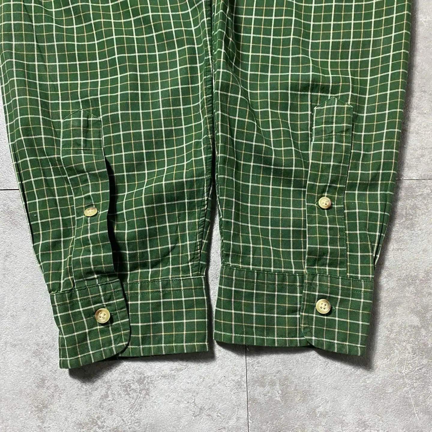 00s ラルフローレン 刺繍ロゴ グリーン チェック総柄 ボタンダウンシャツ