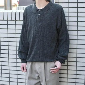 古着 Dockers melange ニットポロ アクリルニット デザインニット