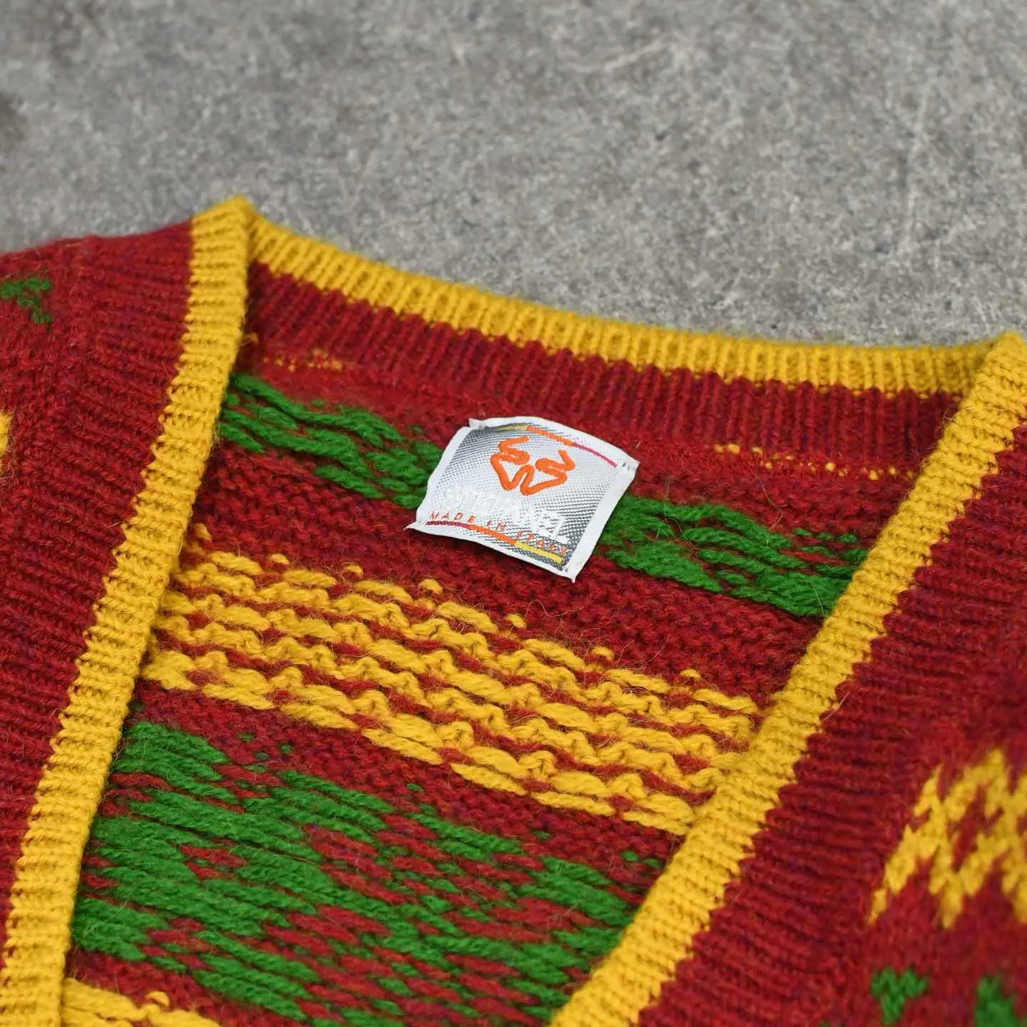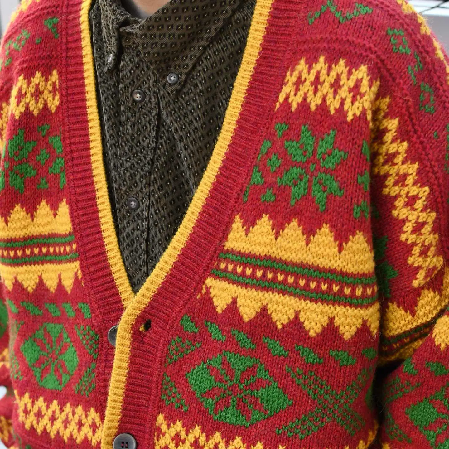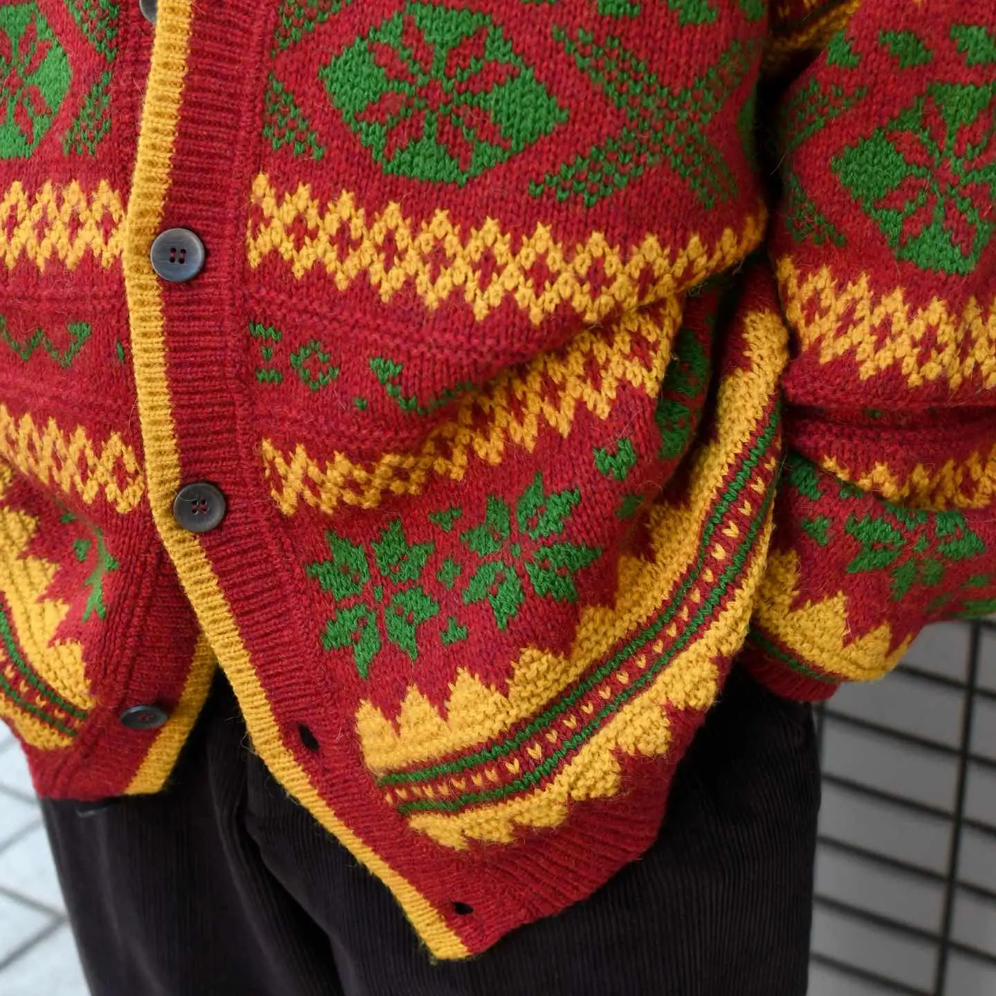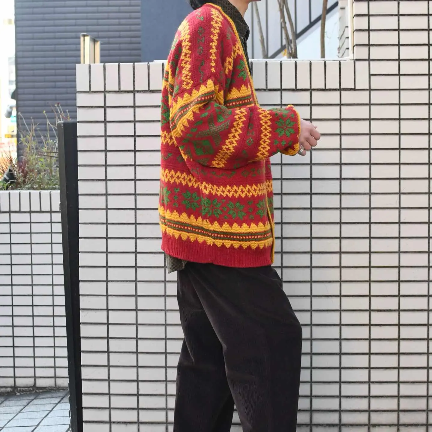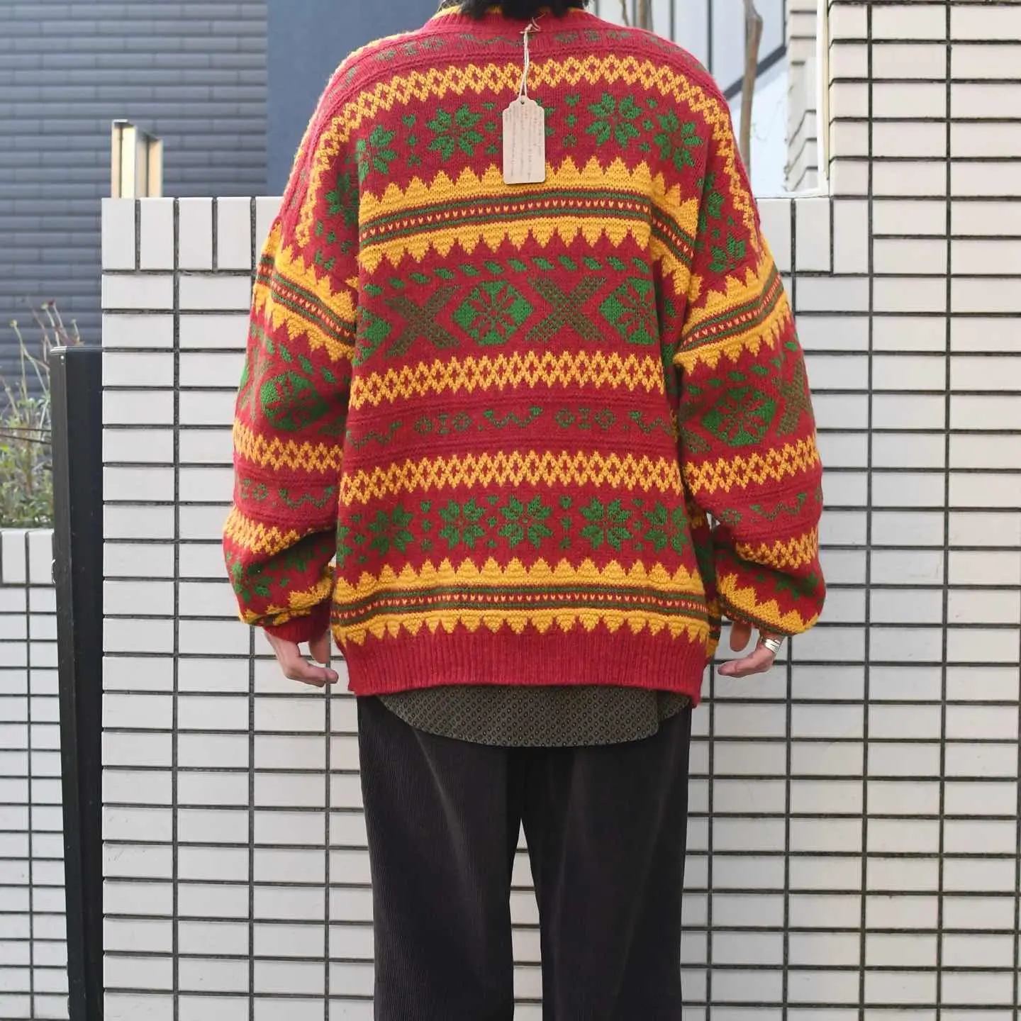 SIZE:XL 着丈73cm 肩幅73cm 身幅70cm 袖丈63cm fabric/wool・acrylic・alpaca made in Italy 着用画像 173cm/56kg 個人的に一際惹かれたカラーリングと柄。 差し色としてアウターの中に仕込んだり、 インナーや小物で色を拾って上手く纏めたいなと 感じました。 程よくゆとりのあるサイズ感で、 インナーが比較的オーバーサイズでも 包み込んでくれるのが◎ 暖色系のアイテムの中でも個性ある色使いからか、 敬遠されがちですが意外にも袖を通すと 可愛いものです。 すこぶる推してます。 ※撮影状況により、実物と多少色が異なる場合が ございます。 ※古着を取り扱っているため、気づかない汚れや ほつれ等がある場合がございます。 ※サイズは着用感で選んでおり、 表記サイズは説明欄の最初に記載しております。 古着 オーバーサイズ old vintage ヴィンテージ used 80's 90's アメリカ古着 ユーロ古着 POLO RALPH LAUREN Eddie Bauer OLD GAP LANDS' END ランズエンド LLBean エルエルビーン オールドギャップ エディーバウアー ラルフローレン ブルックスブラザーズ Brooks Brothers 赤 レッド 黄色 イエロー デザインニット などがお好きな方 #vintage #オーバーサイズ #old #used #90s #80s #古着 #ヴィンテージ #アメリカ古着 #ユーロ古着 #LLBean #エルエルビーン #EddieBauer #エディーバウアー #oldgap #オールドギャップ #LANDSEND #ランズエンド #NAUTICA #ノーティカ #ラルフローレン #POLORALPHLAUREN #ブルックスブラザーズ #BrooksBrothers #カーディガン #ニット #セーター #デザインニット