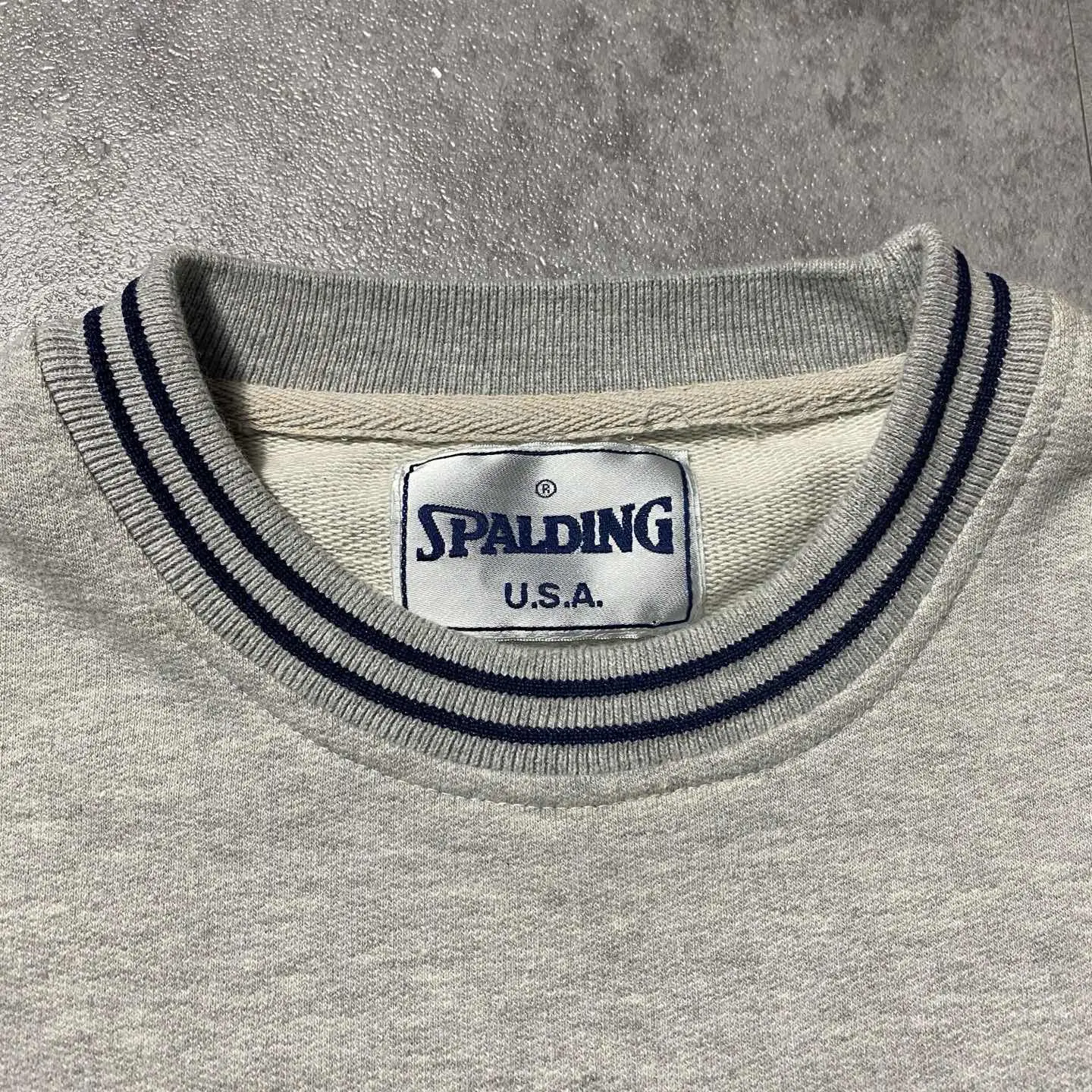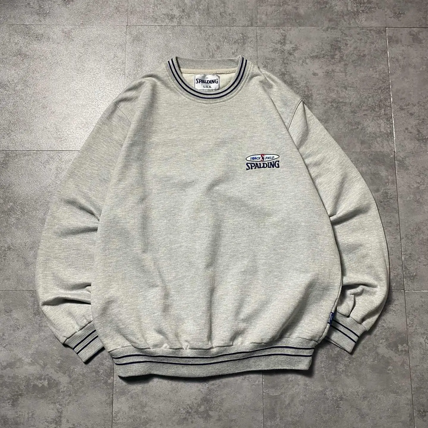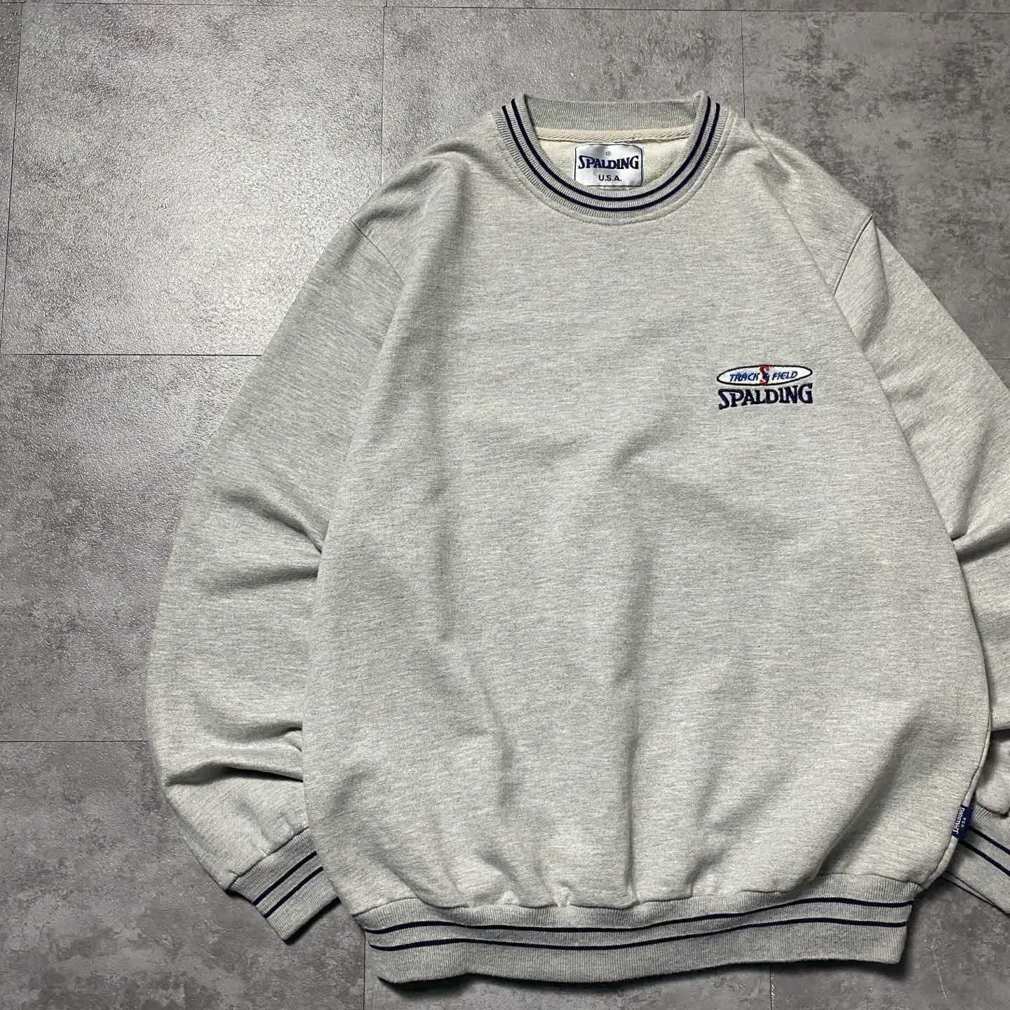 90s SPALDING 刺繍ワンポイント ラインリブ グレー スウェット