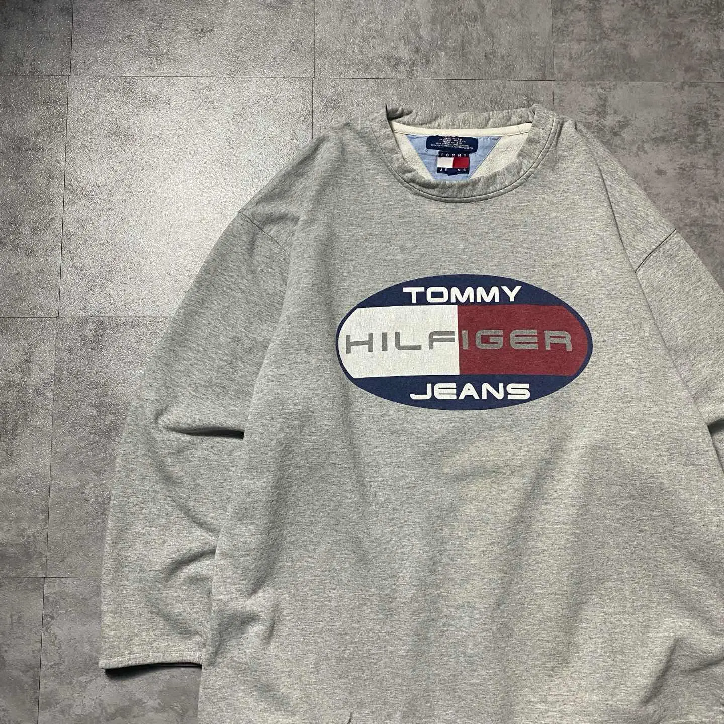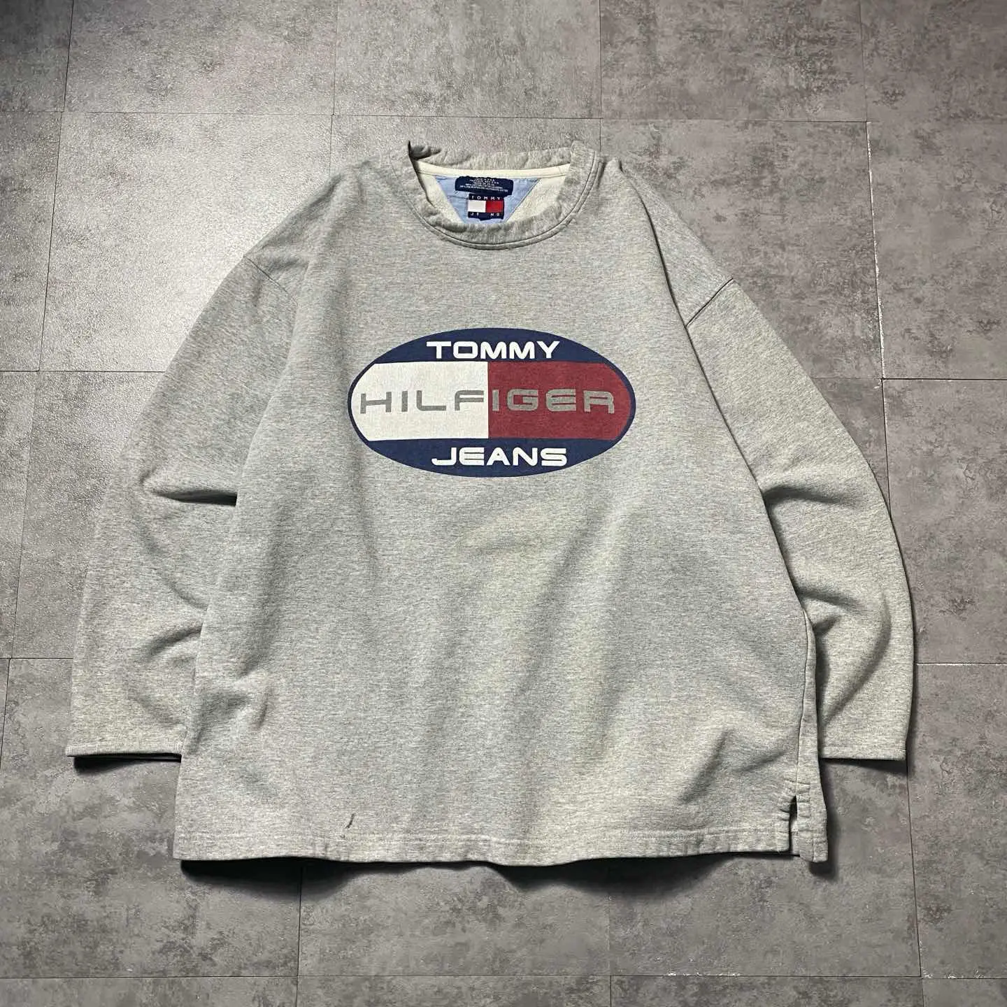【USA製】90s トミージーンズ プリント グレー XLサイズ スウェット