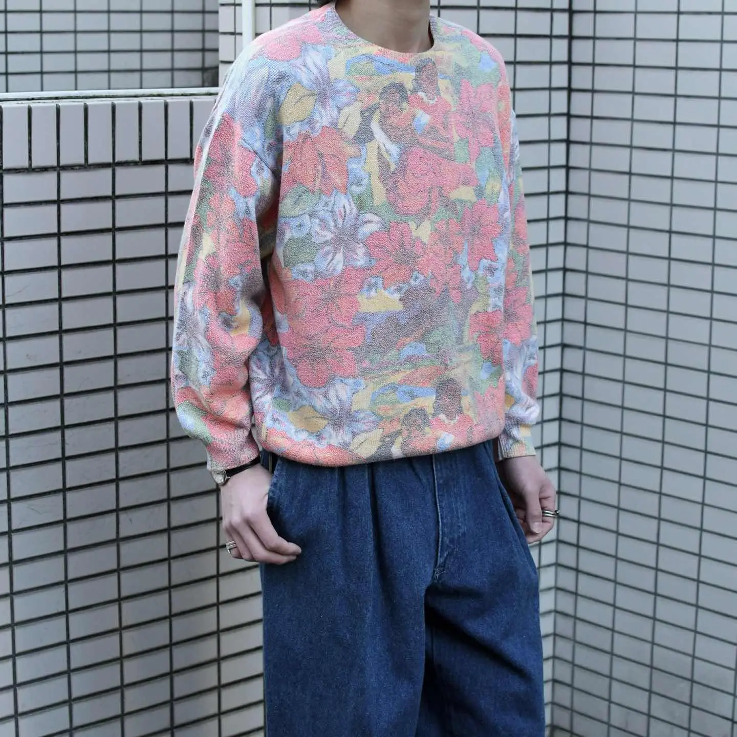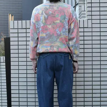 古着 フルプリント ニット セーター コットンニット デザインニット 総柄 柄