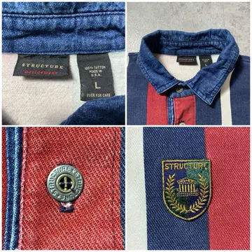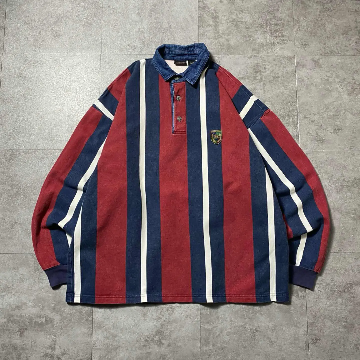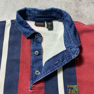 90s Structure ワッペン ストライプ デニム襟 ポロシャツ