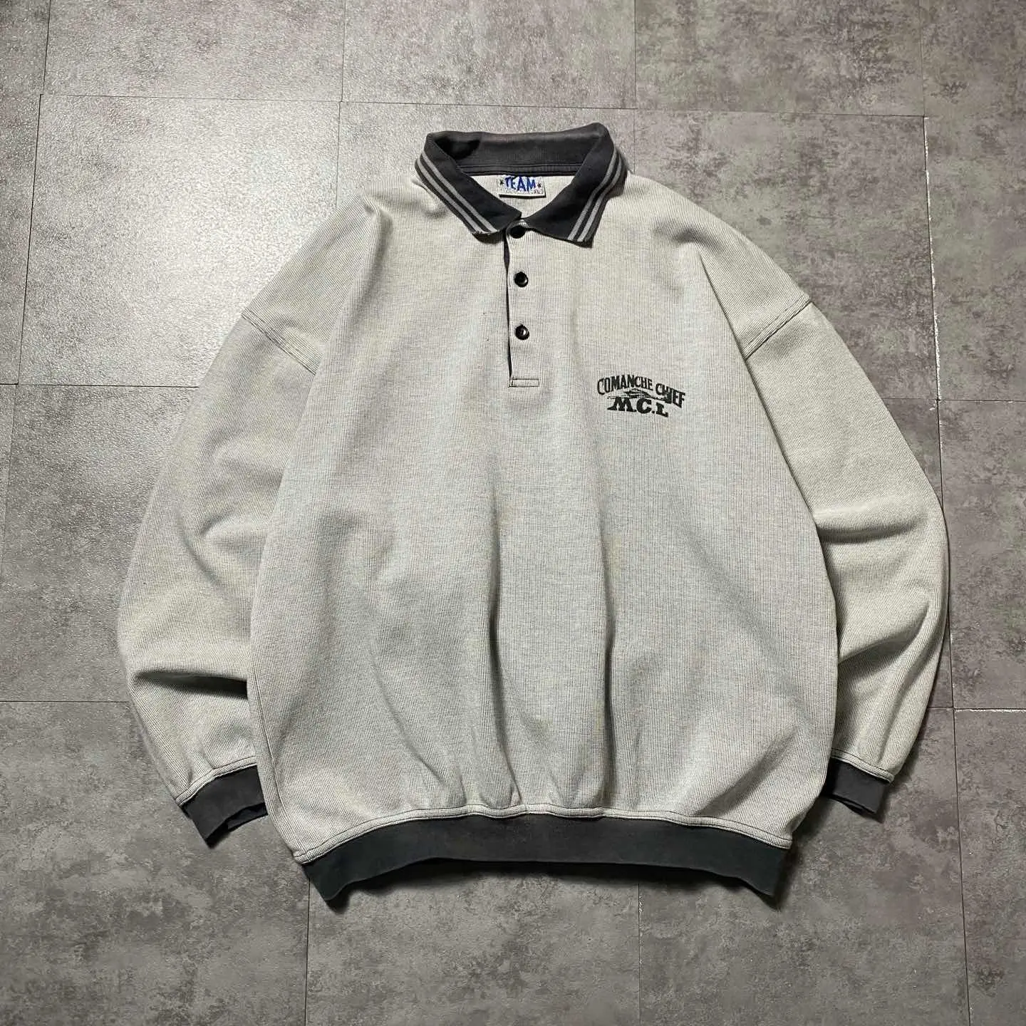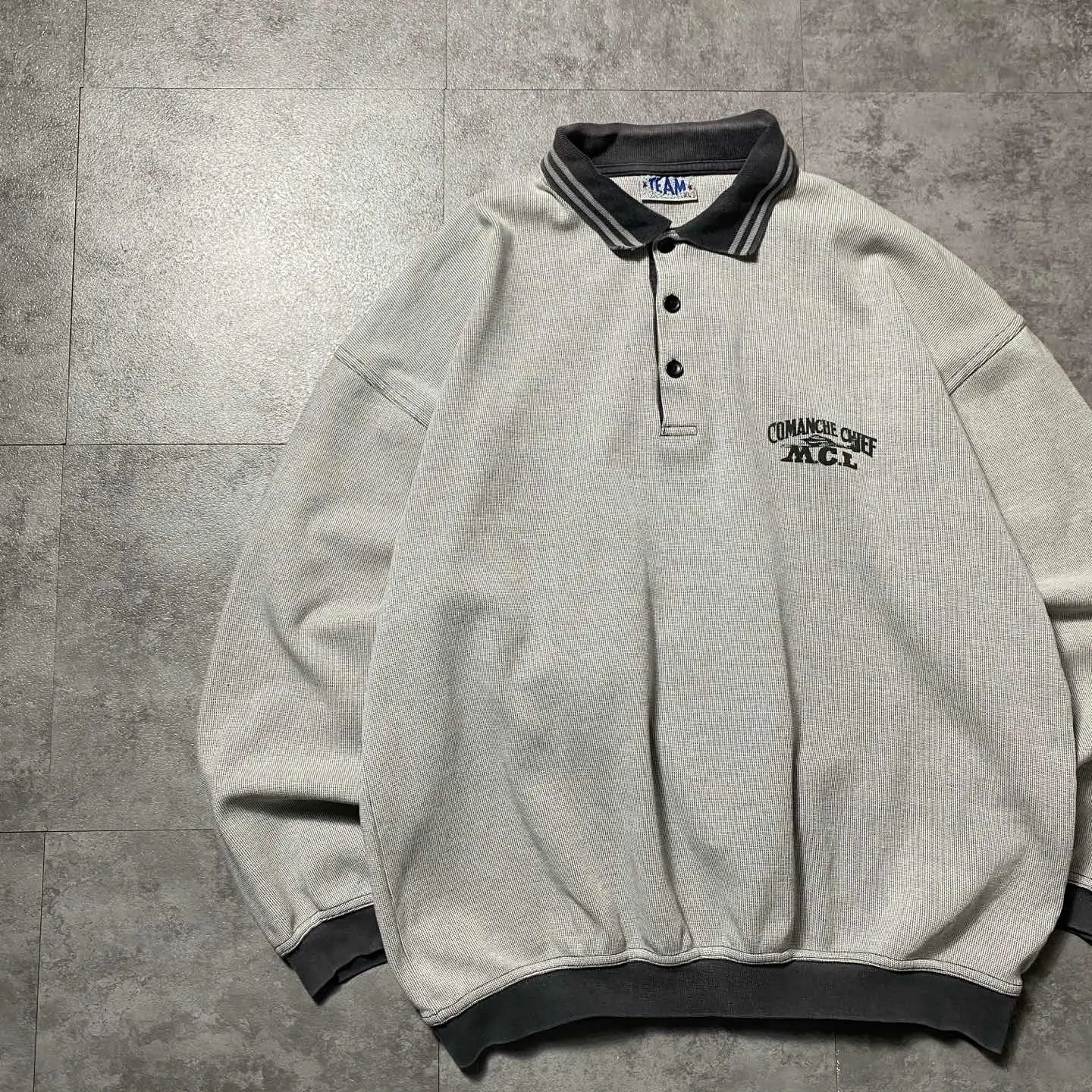 【XL】90s TEAM ワンポイント スモールバーズアイ 襟付ラガースウェット