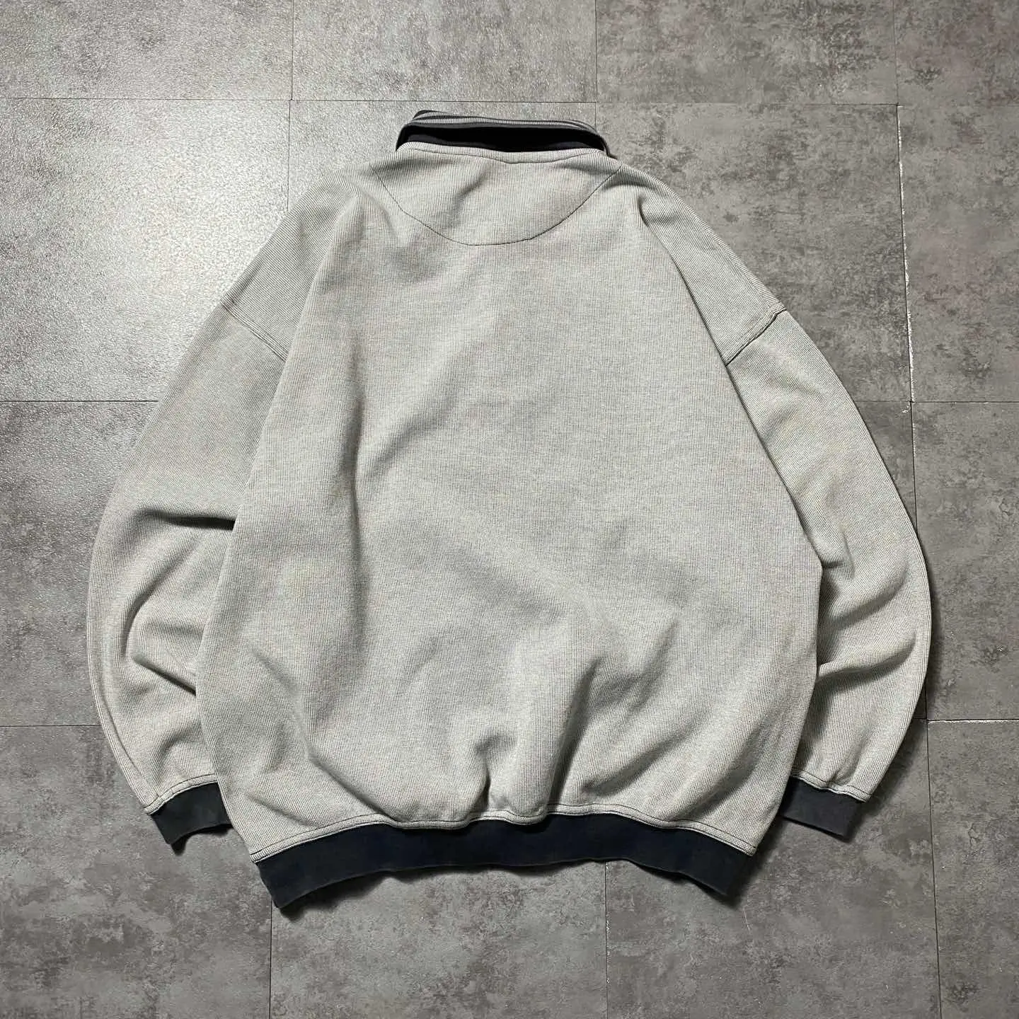 90s SPALDING 刺繍ワンポイント ラインリブ グレー スウェット