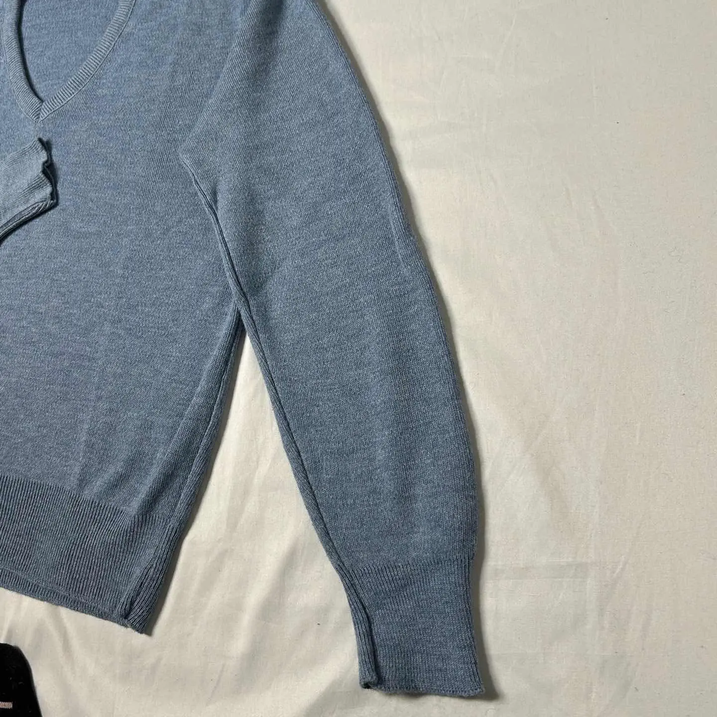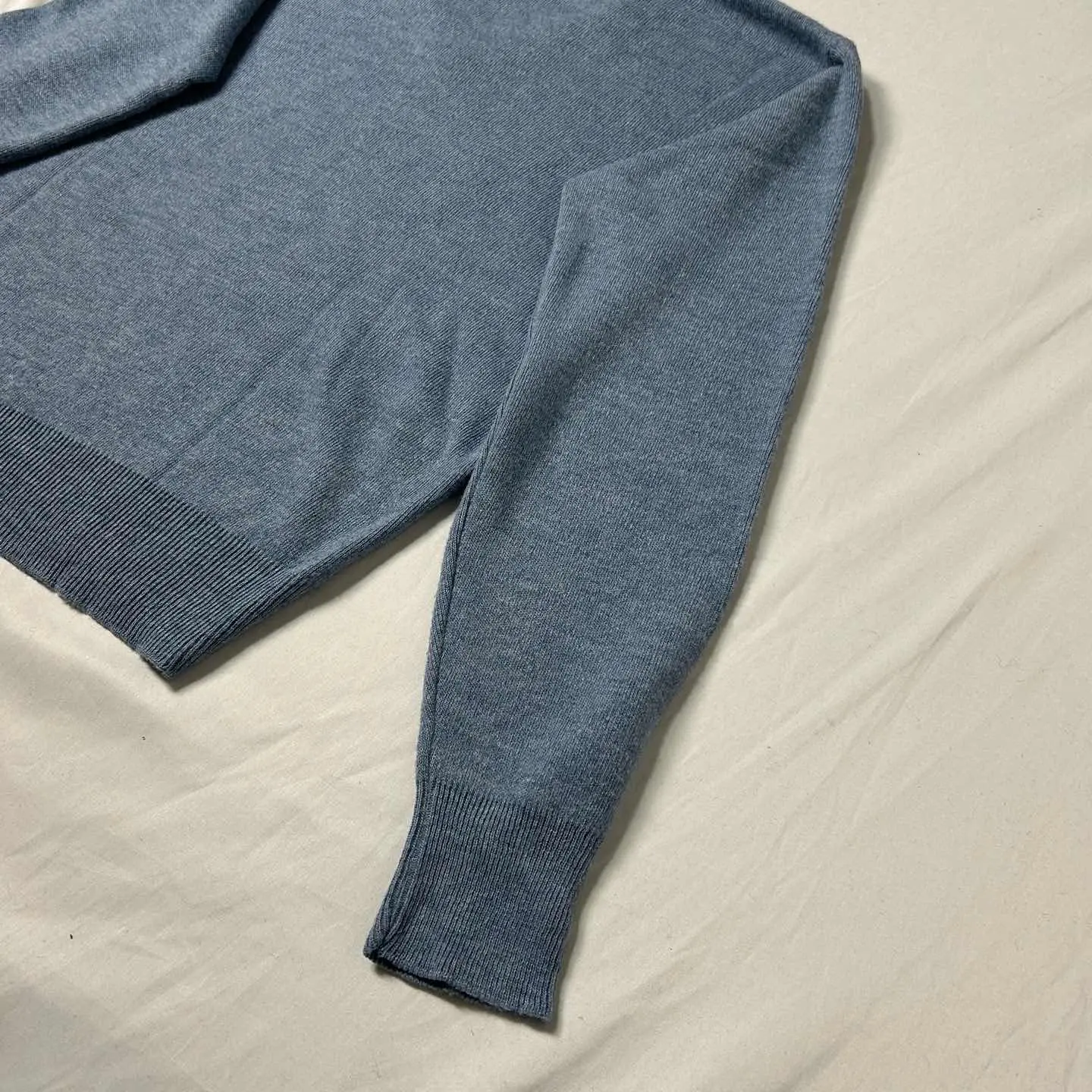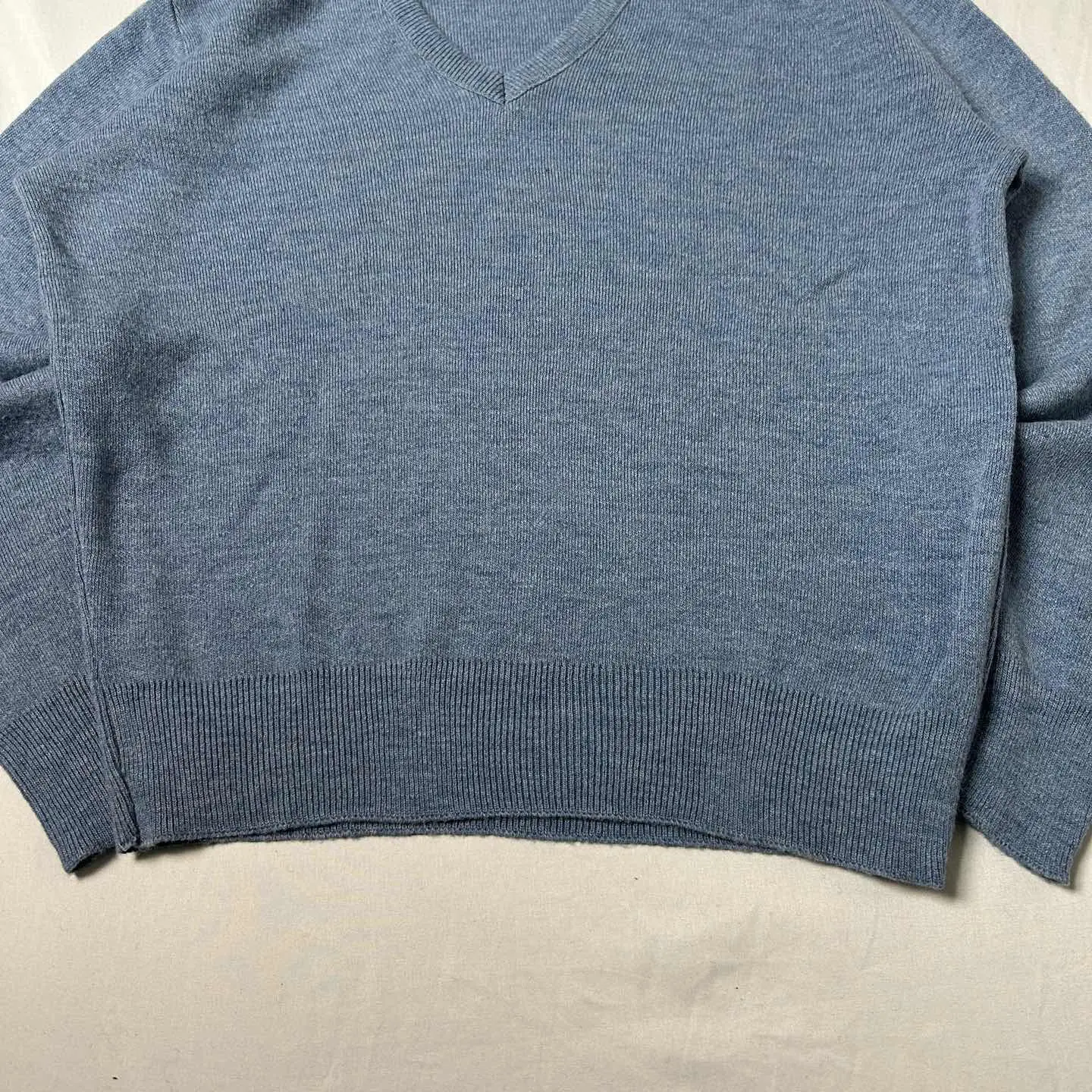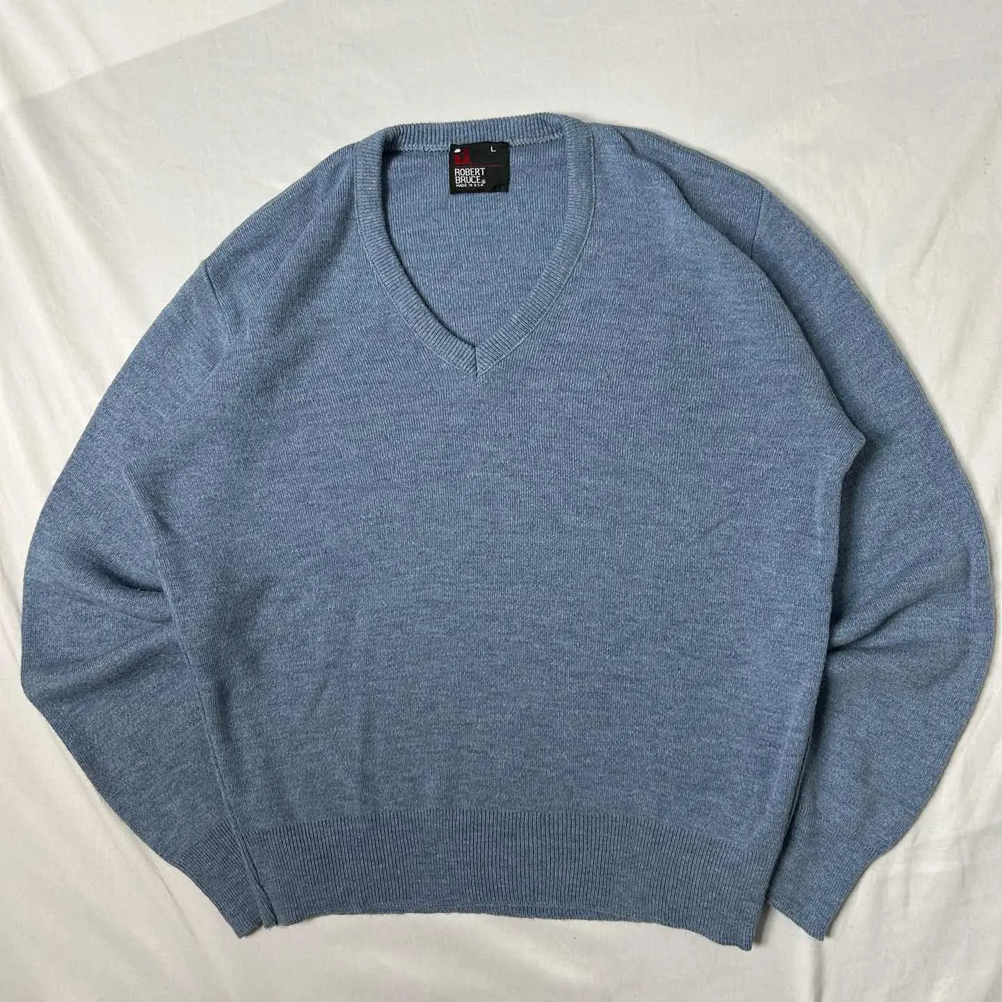 ○商品説明 ■ブランド:ロバートブルース ■アイテム:ブイネックニット ■カラー :ペールブルー系 ■素材 :アクリル100% ■生産国 :アメリカ ■年代 :1980~1990年代 ○サイズ・実寸 表記サイズ:L 着丈60/身幅55/肩幅46/袖丈61 ⚠︎着用感には個人差があるため、必ず実寸をご確認ください❗️ ○コンディション 【A】 【S】ほぼ新品。美USEDの商品 【A】若干の使用感はあるが、状態の良いUSED 【B】使用感はあるが、目立つダメージや大きな汚れはない 【C】使用感と部分的に目立つダメージや汚れあり 【D】過度の使用感、目立つダメージや汚れあり。使用は可能 アイテム説明: アメリカ老舗ブランド「Robert Bruce」のVネックセーター 上品なライトブルーが印象的な一枚で、インナー使いにもおすすめのハイゲージニット。 アクリル100%で滑らかな肌触りで 着丈も丁度良く、すっきりとしたシルエットを楽しめます。 “Clean and minimal vintage piece. Perfect for daily wear.”