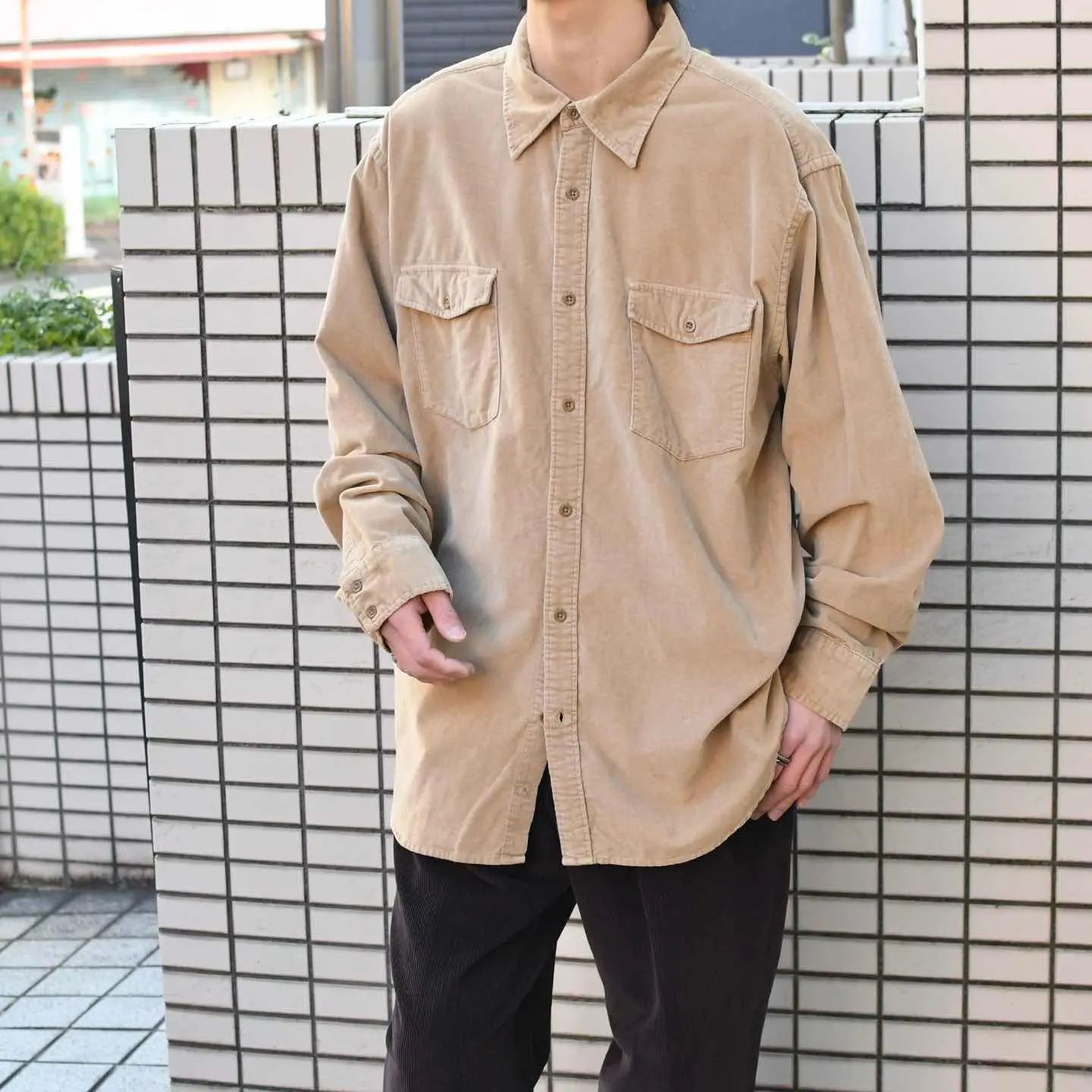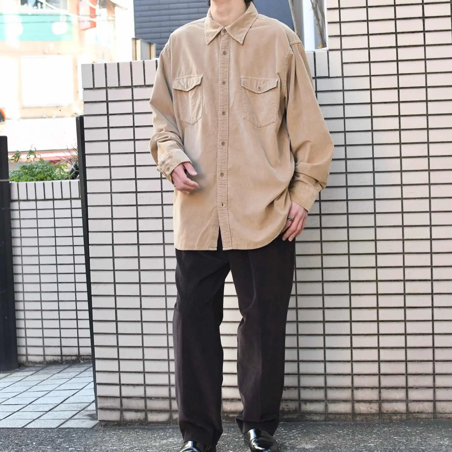 古着 オーバーサイズ 総柄シャツ コーデュロイシャツ 細畝 ボタンダウンシャツ