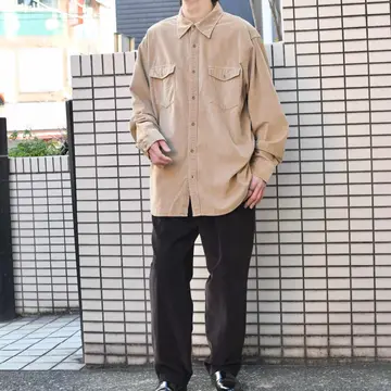 SIZE:XL 着丈79cm 肩幅52cm 身幅65cm 袖丈64cm fabric/cotton 着用画像 173cm/56kg ベロアシャツと聞くと、良くも悪くも 妖艶な雰囲気があり、ドレスよりなスタイリングで 用いる印象がありますが、この個体は別物。 ベロア特有の光沢を抑え、ワークシャツの ディテールのような角ばったポケットを 付けることで、カジュアルにも落とし込める ベロアシャツ。 デニムなどカジュアルなパンツと合わせて、 さりげなく生地で差を付ける、 そんなスタイリングにどうでしょう。 ※色味に関しましては、物撮りを参考に お願い致します。 ※撮影状況により、実物と多少色が異なる場合が ございます。 ※古着を取り扱っているため、気づかない汚れや ほつれ等がある場合がございます。 ※サイズは着用感で選んでおり、 表記サイズは説明欄の最初に記載しております。 古着 オーバーサイズ old vintage ヴィンテージ used 80's 90's アメリカ古着 ユーロ古着 POLO RALPH LAUREN Eddie Bauer OLD GAP LANDS' END ランズエンド LLBean エルエルビーン オールドギャップ エディーバウアー ラルフローレン ブルックスブラザーズ Brooks Brothers ワークシャツ などがお好きな方 #vintage #オーバーサイズ #old #used #90s #80s #古着 #ヴィンテージ #アメリカ古着 #ユーロ古着 #LLBean #エルエルビーン #EddieBauer #エディーバウアー #oldgap #オールドギャップ #LANDSEND #ランズエンド #NAUTICA #ノーティカ #ラルフローレン #POLORALPHLAUREN #ブルックスブラザーズ #BrooksBrothers #ベロアシャツ #デザインシャツ