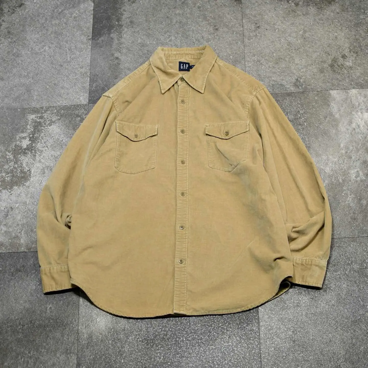 古着 GAP ベロアシャツ ベージュ デザインシャツ 長袖シャツ シャツ