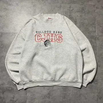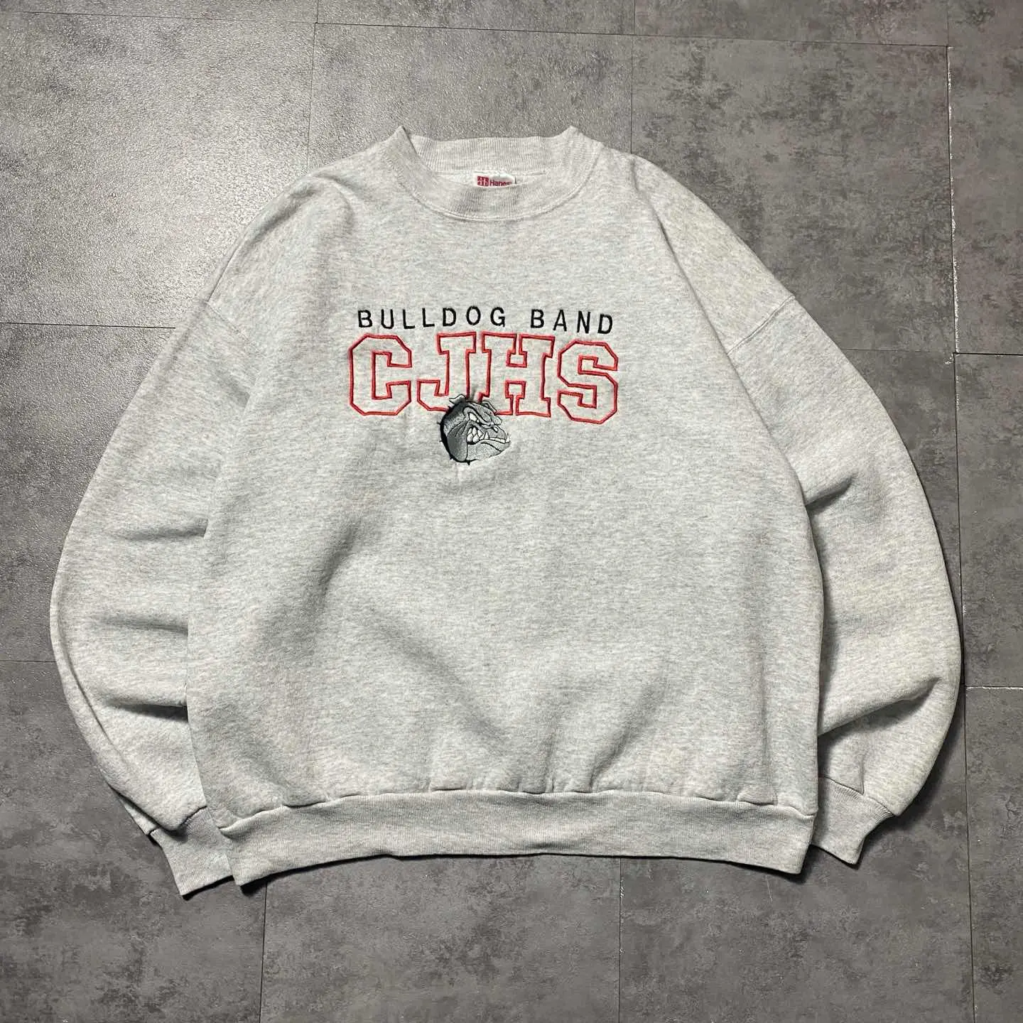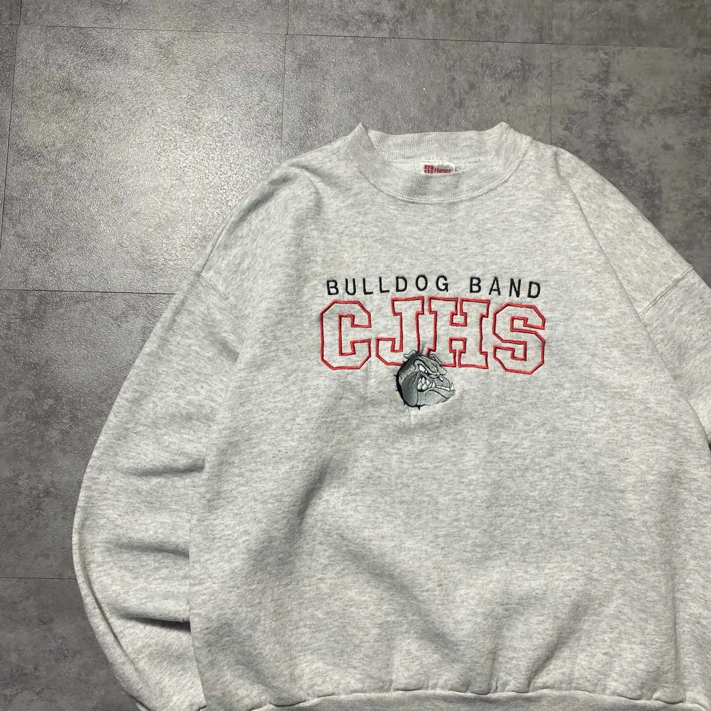 【XL】90s ヘインズ ブルドッグバンド 刺繍ロゴ グレー スウェット