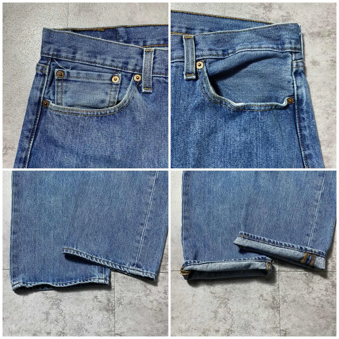 ○Size○ 表記→W36 L32 ・ウエスト90 ・レングス78 ・股上29 ・わたり幅30 ・裾幅20 ・総丈105 ○Color○ ・デニム紺 ○Material○ ・100%コットン ○Condition○ ・目立つ傷や汚れ無し ○caution○ 当店で取り扱っている商材は全て『古着』となっております。 そのため、多少の状態難(ほつれ、傷、汚れ、リブの伸び、使用感、擦れ、色あせ、etc)がある場合がございます。 新品同様の完璧なお品物をお求めの方は当店でのお買い物を控えて頂きますよう宜しくお願いします。 また、購入された商品に関しましては、購入日時から起算して『72時間以内に』発送手続きの方を取らせて頂きます。 お急ぎの場合は購入前に当店オンラインストアの方にお問い合わせ頂きますよう宜しくお願いします。 26/45