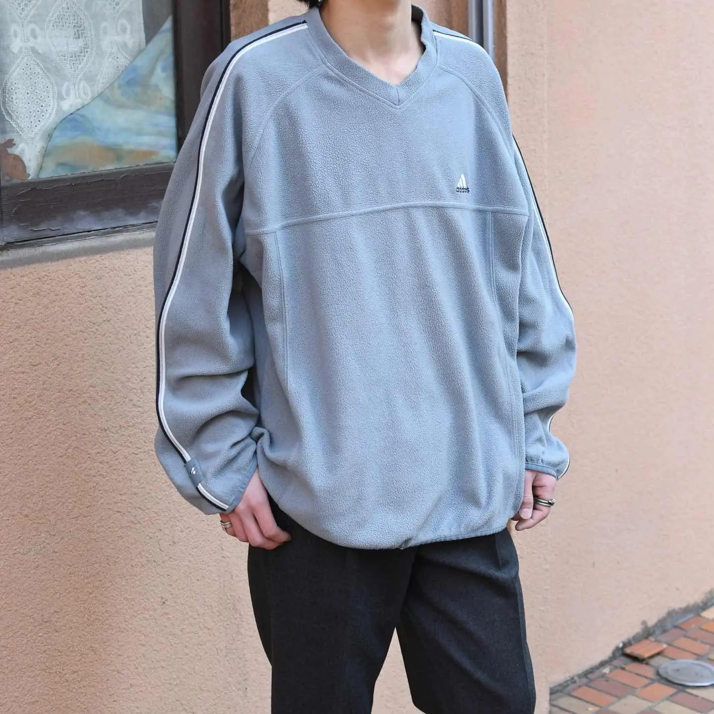 古着 adidas サイドライン デザイン フリース プルオーバー スウェット