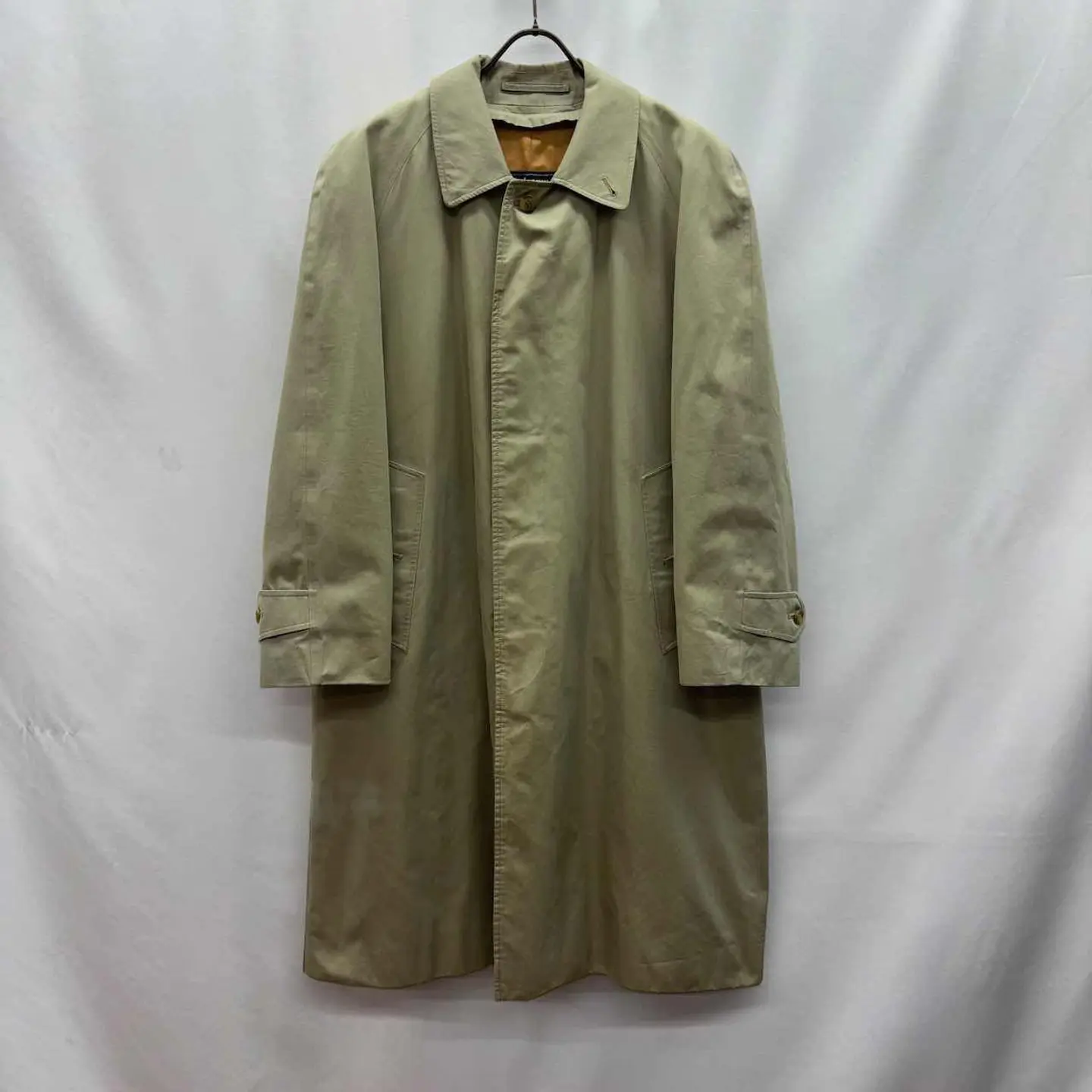 【サイズ表記】 46 short (170cm前後がジャスト) 【サイズ(cm)】 肩幅ラグランスリーブ(おおよそ54cm) 袖丈ラグランスリーブ(おおよそ57cm) 裄丈86 袖口(平置)17 腕周(平置)25 着丈100 身幅(脇下)59 【商品詳細】 生産国 :England ブランド:Burberrys カラー :ベージュ+緑の玉虫色 素材 :100% cotton 【コンディション】 B 【S】新品、展示品、デットストックなど 【A】使用感少なく、状態の良いUSED 【B】使用感あるが、目立つダメージや大きな汚れは無い。 【C】使用感と部分的にダメージや汚れ有り。 【D】使用感があり、大きなダメージや汚れ有り。 ※古着故、多少の着用感や細かい汚れがございます。古着に理解のない方のご購入はお控えいただけると幸いです。 また、撮影状況により色味に若干の差異が生じる事がございます。 【ジャンル】 ユーロヴィンテージ/EURO VINTAGE 【その他】 こちらの商品は古着商品となります。 全て1点のみの在庫となります、ご注意ください。