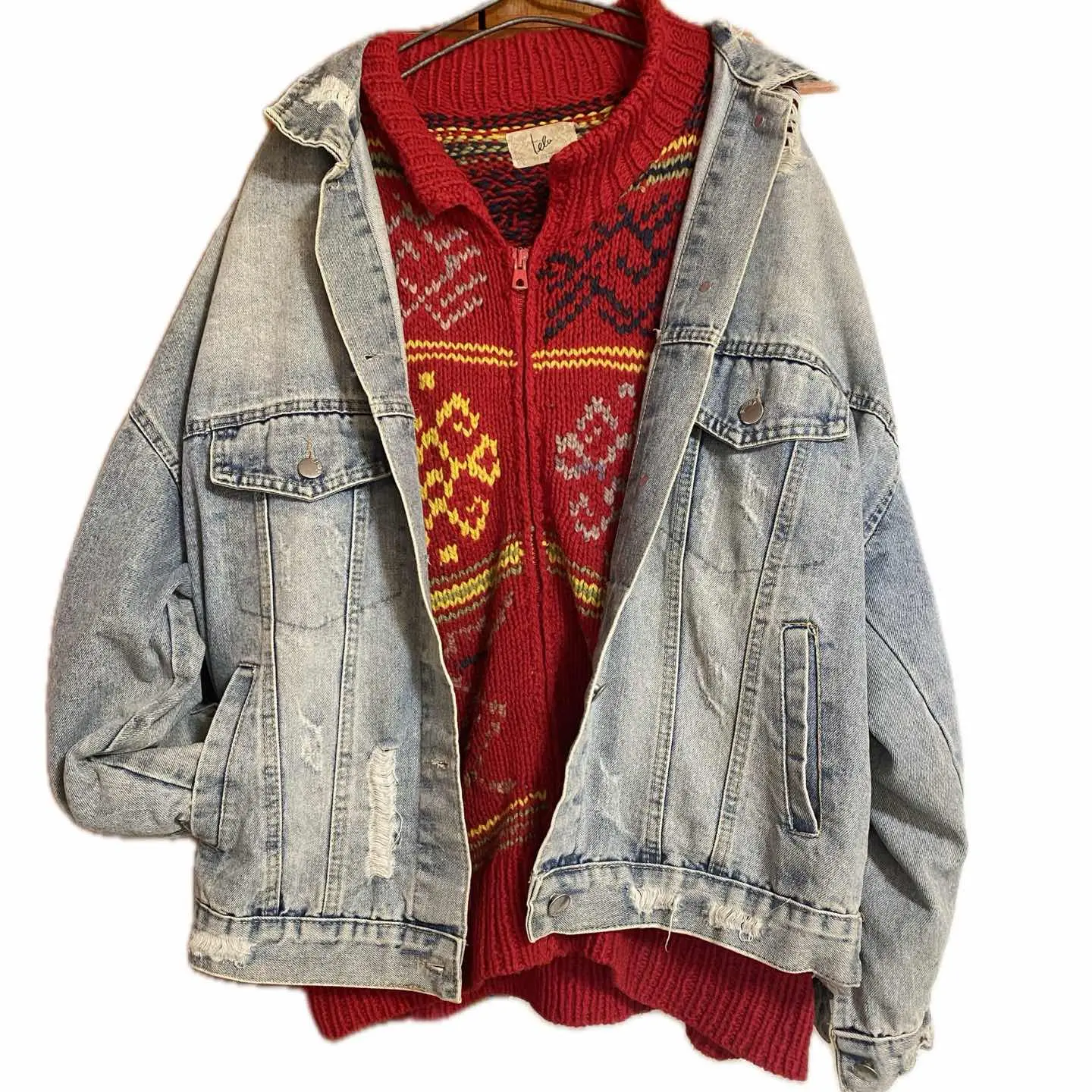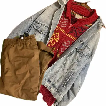 VBAST.ブランドと思わない事【最高級の意味】 さらに、バック1994年のcollectionシリーズです。 世界に1つのデニムジャケットならデニム好きにはたまらないですね。しかも何年も何年も着込んだ間のようなダメージ加工をデザイナーが手作業で縦糸抜きという技法でしあげ、 最後はほんとにヴィンテージの雰囲気が半端ない。フェード感を手作業でこれも出してますね。 手間暇かかったOne of a Kind 1回限りのアパレル用語の商品です。 あなただけの1着 フロントはスタンダードにヴィンテージの80年をリバイバルしたデニムジャケットなのに、バックにバチバチ刺繍があるってめちゃくちゃかっこよくないですか? コーディネートぜひ参考にしてくださいね。カウチンのインナーに仕込みワークパンツでめちゃくちゃ古着好きをアピールしつつ、トレンドを取り入れる大人アメカジです。 確実にこのスタンスはかっこいいですし、参考になりましたら即ゲットください。迷っていたら本当にもったいない商品です。 ▷color◁ フェード加工、写真参照 ※ブラウザで異なる場合ありますがかなり実物には、近づけてます、 ▷size◁ 平置き片面採寸【㎝表記】 表記size F 着丈/66 身幅/64 肩幅/66DS.BOXこれが、80意識したシルエット 袖丈 /65DS DSは袖はハンガー採寸 Mジャストの私が、着用でゆるだぼ、 ※多少の誤差は理解下さい 170/Mジャスト体型の私が着て、✔️参考に ジャスト オーバーサイズ ビックサイズ✔︎ 【素材】 80s意識した、フェードバイアスデニム バキバキしない、シワに強い 年中いける 【状態】 新品を一回念の為洗っただけ、新品同様、vintage加工を使用感と勘違いする、 読解力ない方は、無理!