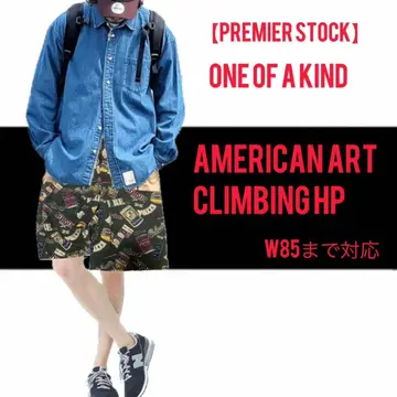90s 非売品 新品同様 アメリカアート総柄、クライミング、ハーフパンツ