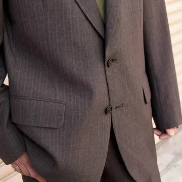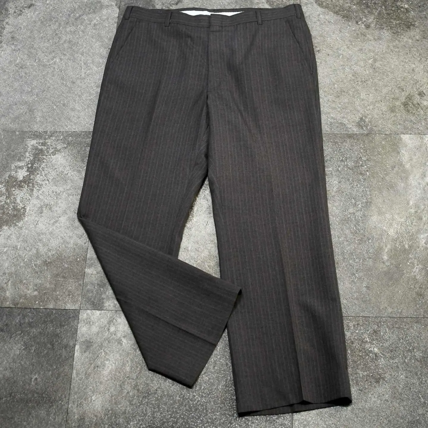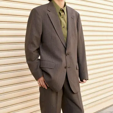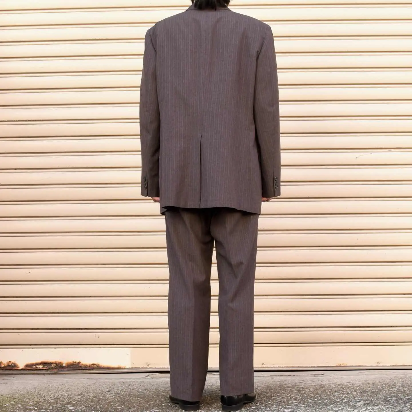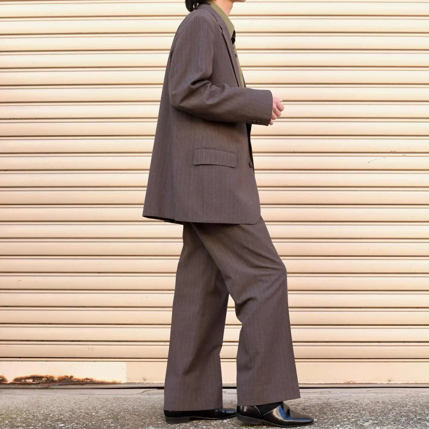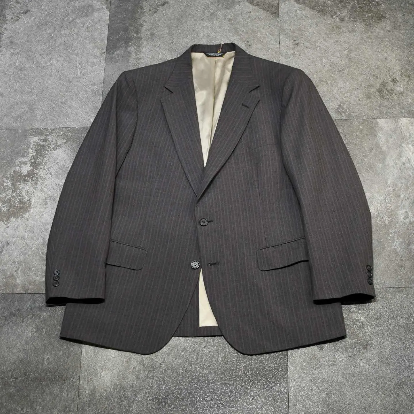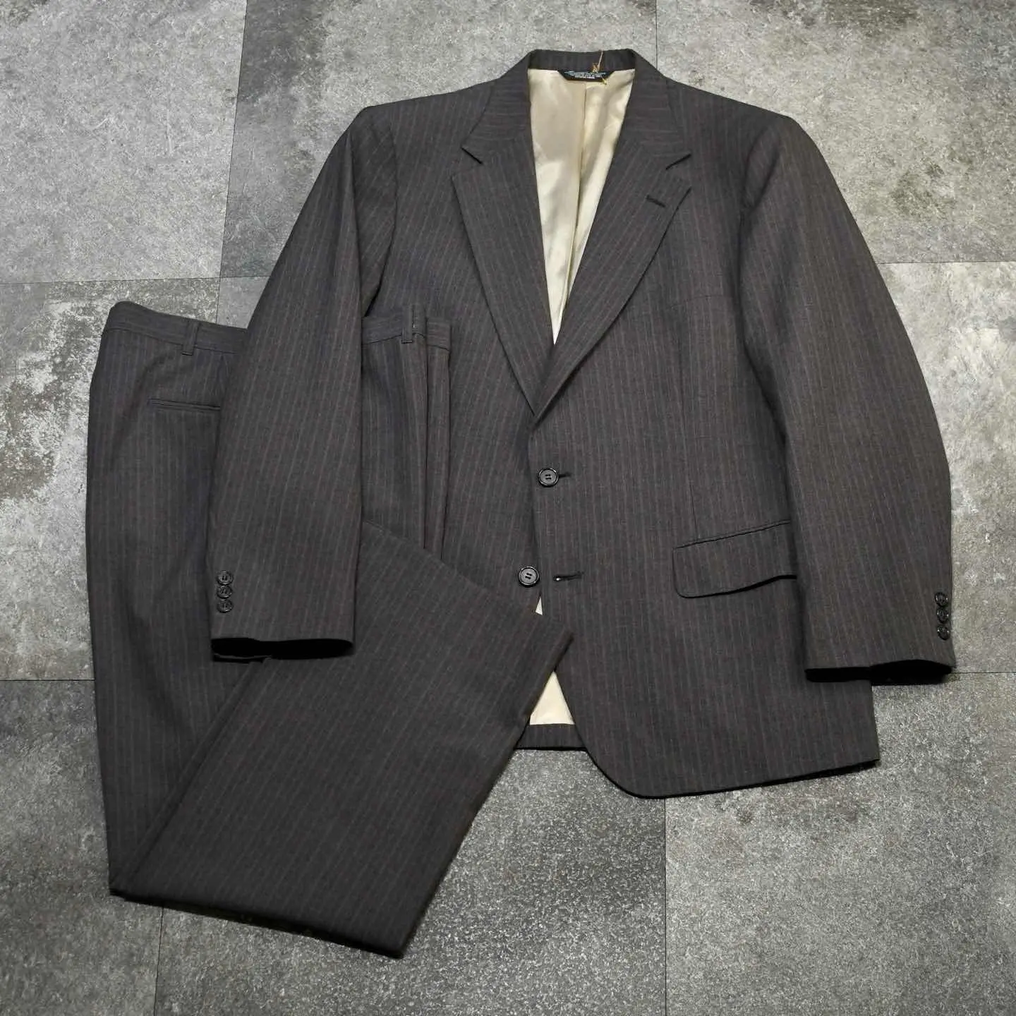 SIZE:- 着丈81cm 肩幅48cm 身幅55cm 袖丈62cm ウエスト90cm 総丈101cm 股下75cm わたり37cm 裾幅26cm fabric/wool made in USA 着用画像 173cm/56kg クラシックさと上品さを纏う、ピンストライプの セットアップ。 パンツはややフレアがかったシルエットで、 差別化出来るのはもちろん、 そのフレア塩梅が強過ぎず、結婚式などで着る スーツとしても活躍する個体ではないでしょうか。 デイリーユースする古着とは違い、多少人の目や マナーを気にする場で身に纏うことが多いであろう セットアップ、”着崩す”というよりか”品”で 周りと差を付けることが出来る、こんな逸品を 手元にどうでしょう。 ※色味に関しましては、物撮りを参考に お願いいたします。 ※撮影状況により、実物と多少色が異なる場合が ございます。 ※古着を取り扱っているため、気づかない汚れや ほつれ等がある場合がございます。 ※サイズは着用感で選んでおり、 表記サイズは説明欄の最初に記載しております。 old vintage ヴィンテージ used 80's 90's アメリカ古着 ユーロ古着 POLO RALPH LAUREN Eddie Bauer OLD GAP LANDS' END ランズエンド LLBean エルエルビーン オールドギャップ エディーバウアー ラルフローレン ブルックスブラザーズ Brooks Brothers テーラードジャケット フレアパンツ ワイドパンツ 茶色 などがお好きな方 #vintage #old #used #90s #80s #古着 #ヴィンテージ #ラルフローレン #POLORALPHLAUREN #ブルックスブラザーズ #BrooksBrothers #セットアップ #setup #スーツ #70s #テーラードジャケット #ジャケット #フレアパンツ #スラックス