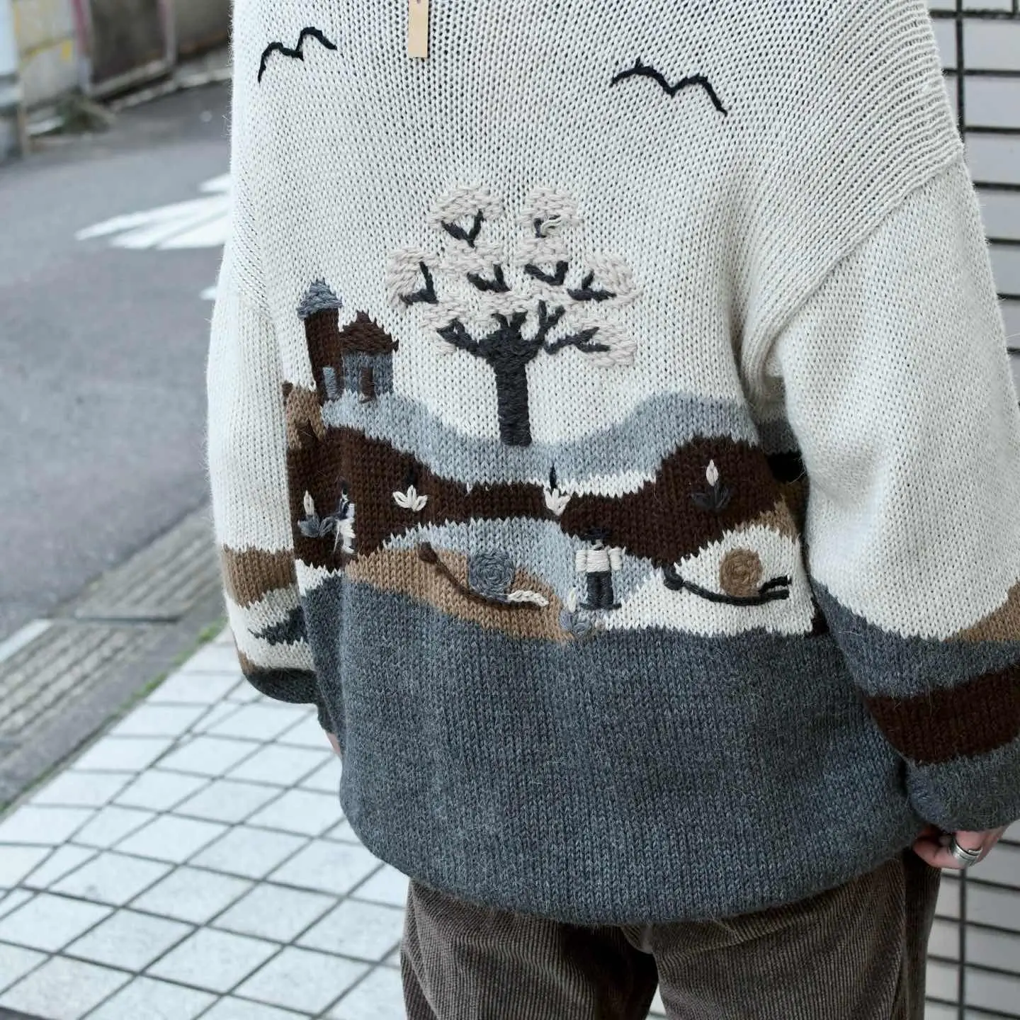 古着 刺繍 アルパカ ニットブルゾン デザインニット ニット セーター ニット