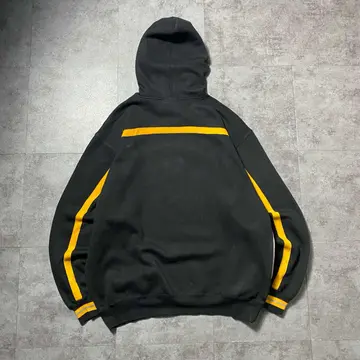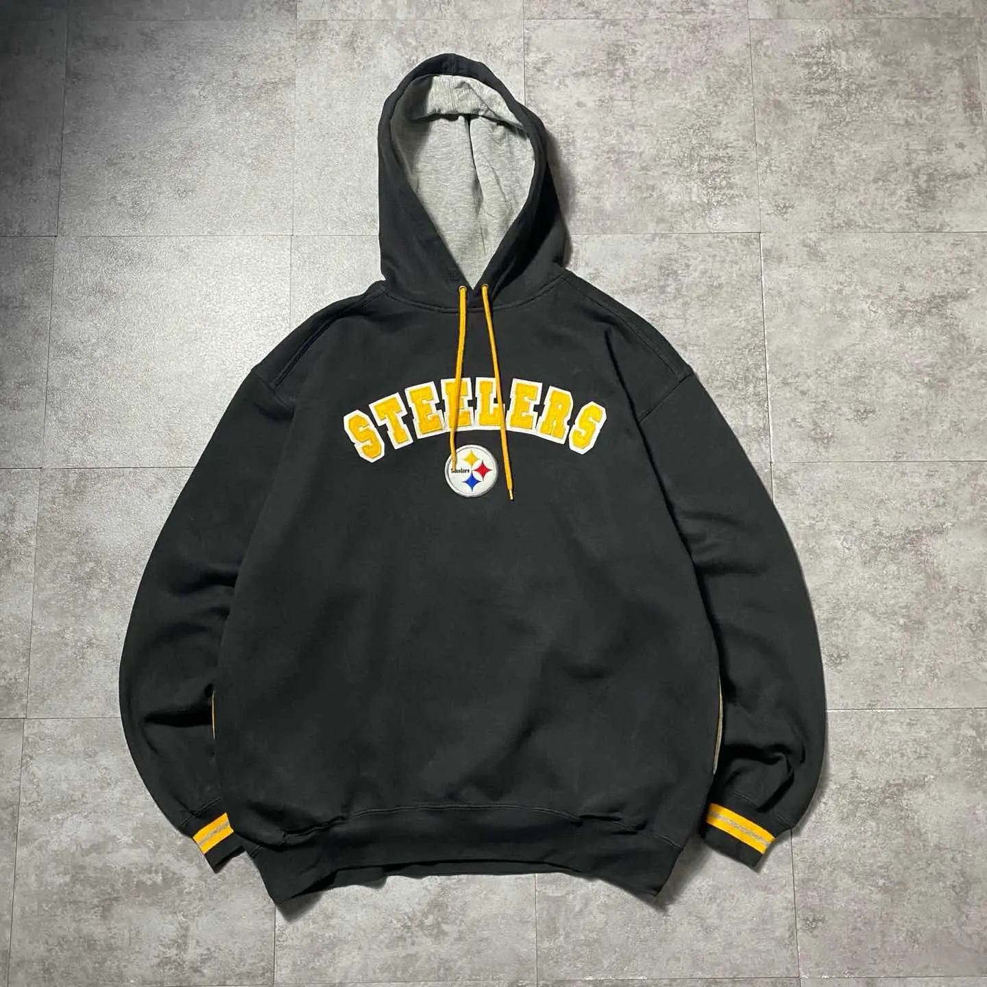 NFL スティーラーズ ワッペンロゴ ラインリブ ブラック スウェット パーカー