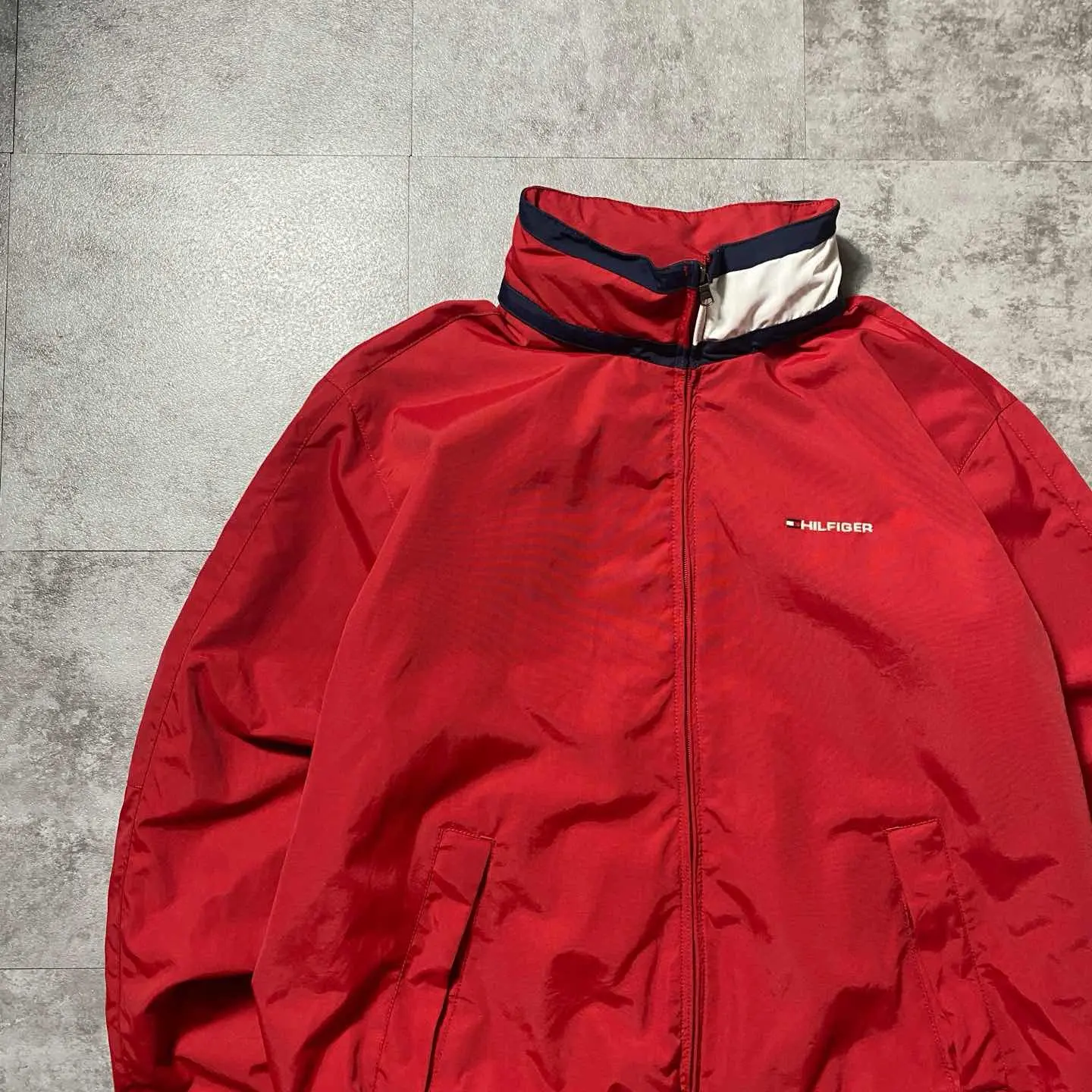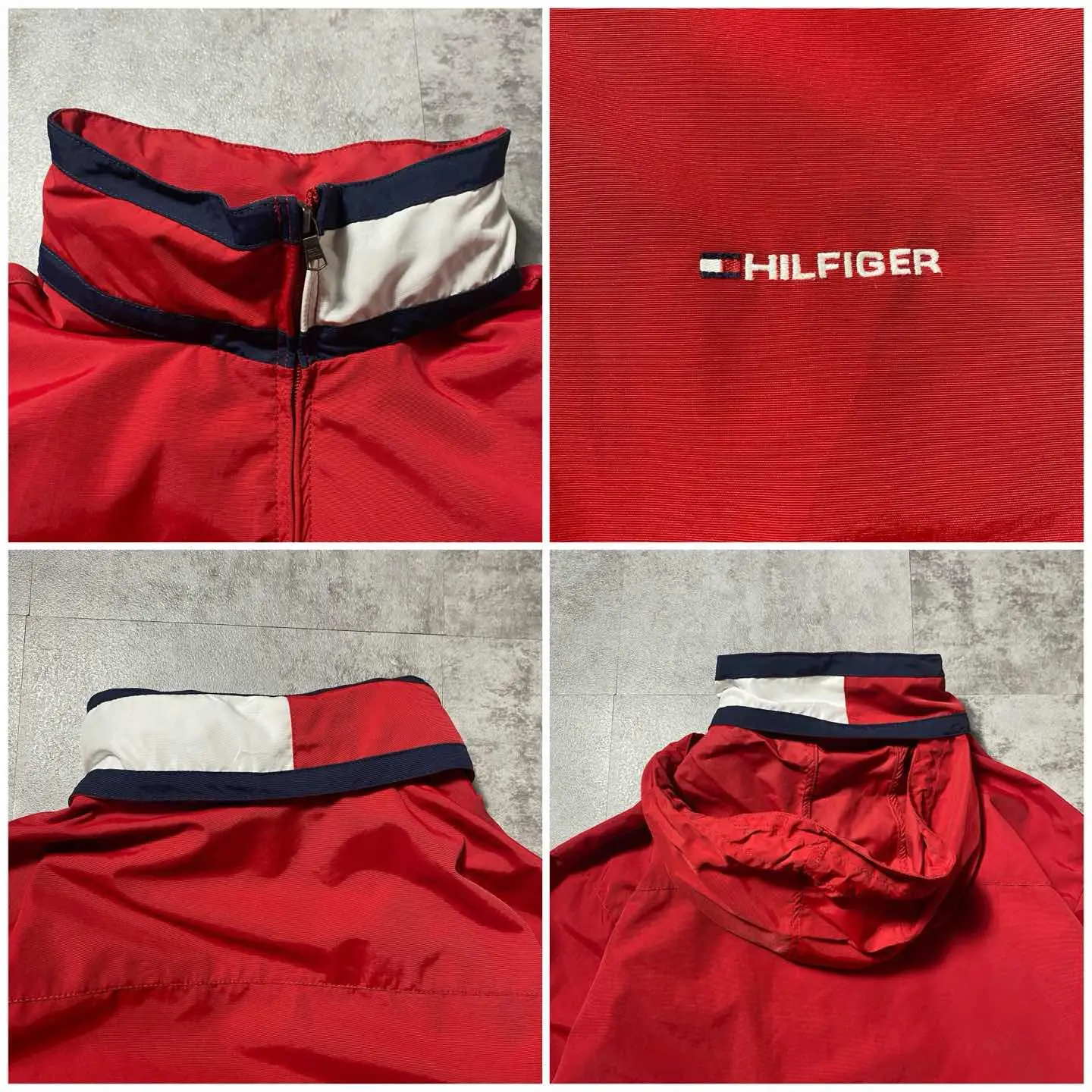 トミーヒルフィガー 刺繍ロゴ フラッグネック フード格納 ナイロンジャケット