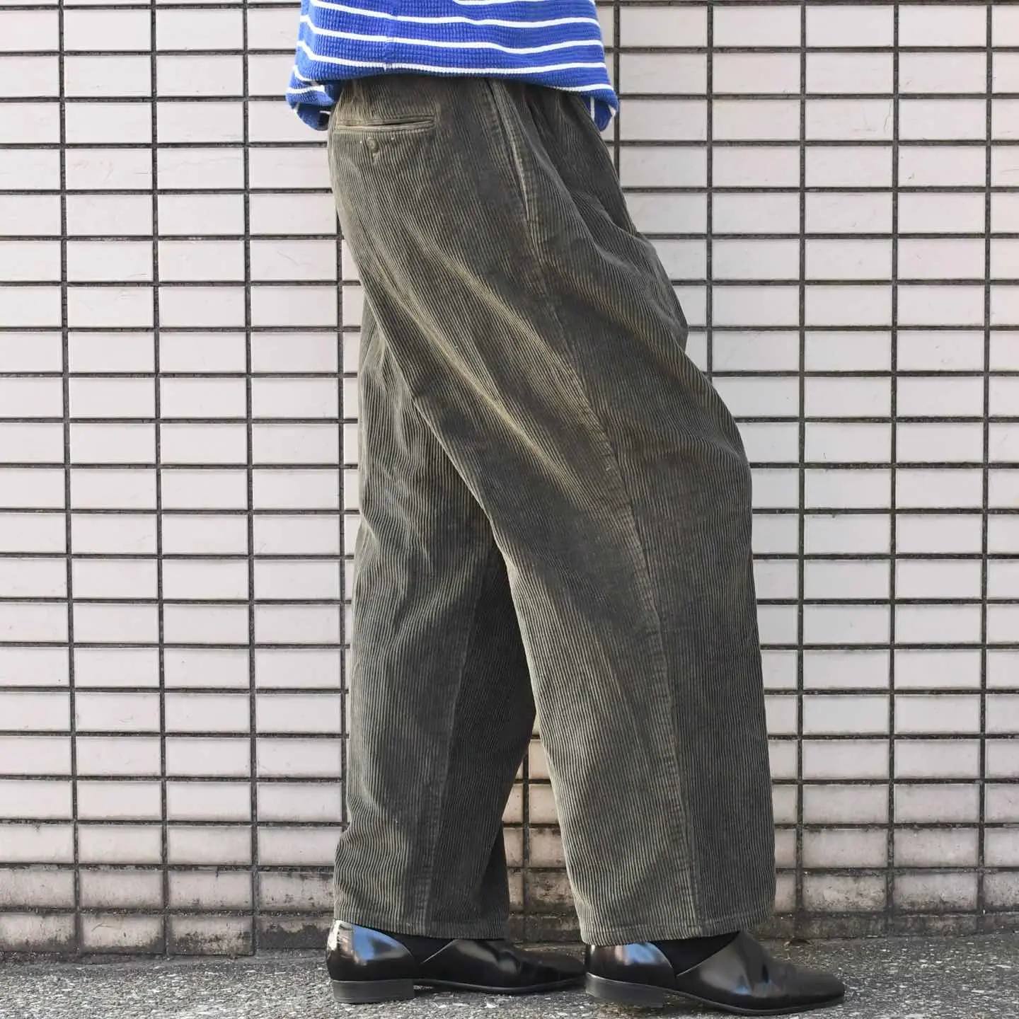 SIZE:38x32 ウエスト94cm 総丈99cm 股下70cm わたり41.5cm 裾幅25cm fabric/cotton 着用画像 173cm/58kg スラックスほどドレス調ではなく、ミリタリーほど 野暮ったくならないパンツ、そんな絶妙な バランスを取ったカーキ色のパンツなら、 こんな一本はどうでしょう。 表情を生む太畝コーデュロイにワイドなシルエット、 カジュアルにもドレス寄りにも振れる汎用性の高い パンツです。 黒のパンツと差別化出来て、尚且つ大人びた 雰囲気をも纏えるのが◎ スタイリングの幅を広げるなら、トップスや アウターよりもがらっと印象の変わるパンツで 探してみるのもどうでしょう。 ※裾上げ等のレングス直しにつきましては、 購入前に必ずご連絡お願い致します。 ※撮影状況により、実物と多少色が異なる 場合がございます。 ※古着を取り扱っているため、気づかない汚れや ほつれがある場合がございます。 ※サイズは着用感で選んでおり、 表記サイズは説明欄の最初に記載しております。 オーバーサイズ old vintage ヴィンテージ used 80's 90's POLO RALPH LAUREN Eddie Bauer OLD GAP LANDS' END ランズエンド LLBean エルエルビーン オールドギャップ エディーバウアー ラルフローレン ブルックスブラザーズ Brooks Brothers タックパンツ などがお好きな方 #vintage #オーバーサイズ #old #used #90s #80s #古着 #ヴィンテージ #LLBean #エルエルビーン #EddieBauer #エディーバウアー #oldgap #オールドギャップ #LANDSEND #NAUTICA #ラルフローレン #POLORALPHLAUREN #ワイドパンツ #タックパンツ #コーデュロイパンツ #スラックス #JOSABANK