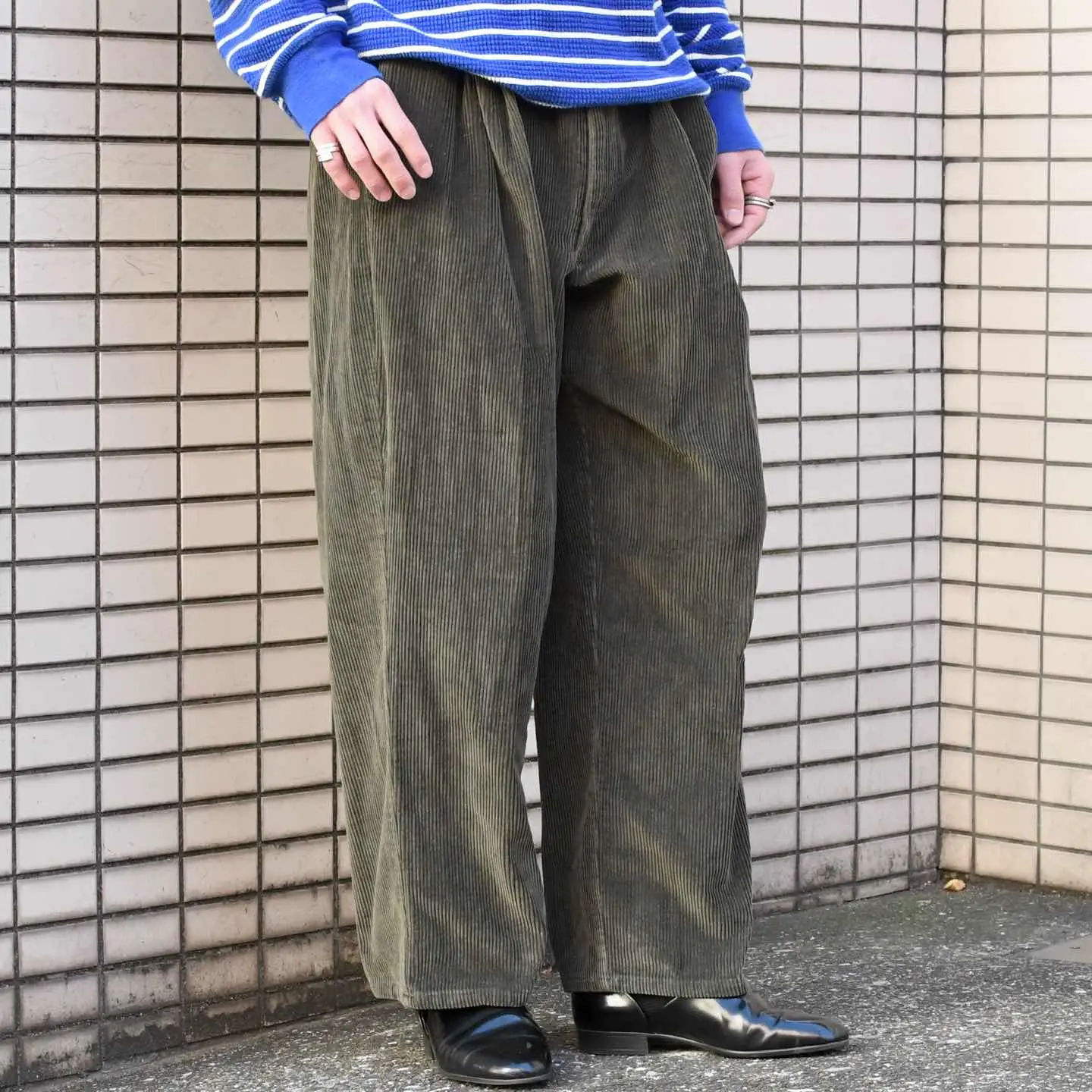古着 JOS.A.BANK カーキ コーデュロイパンツ ワイドパンツ スラックス