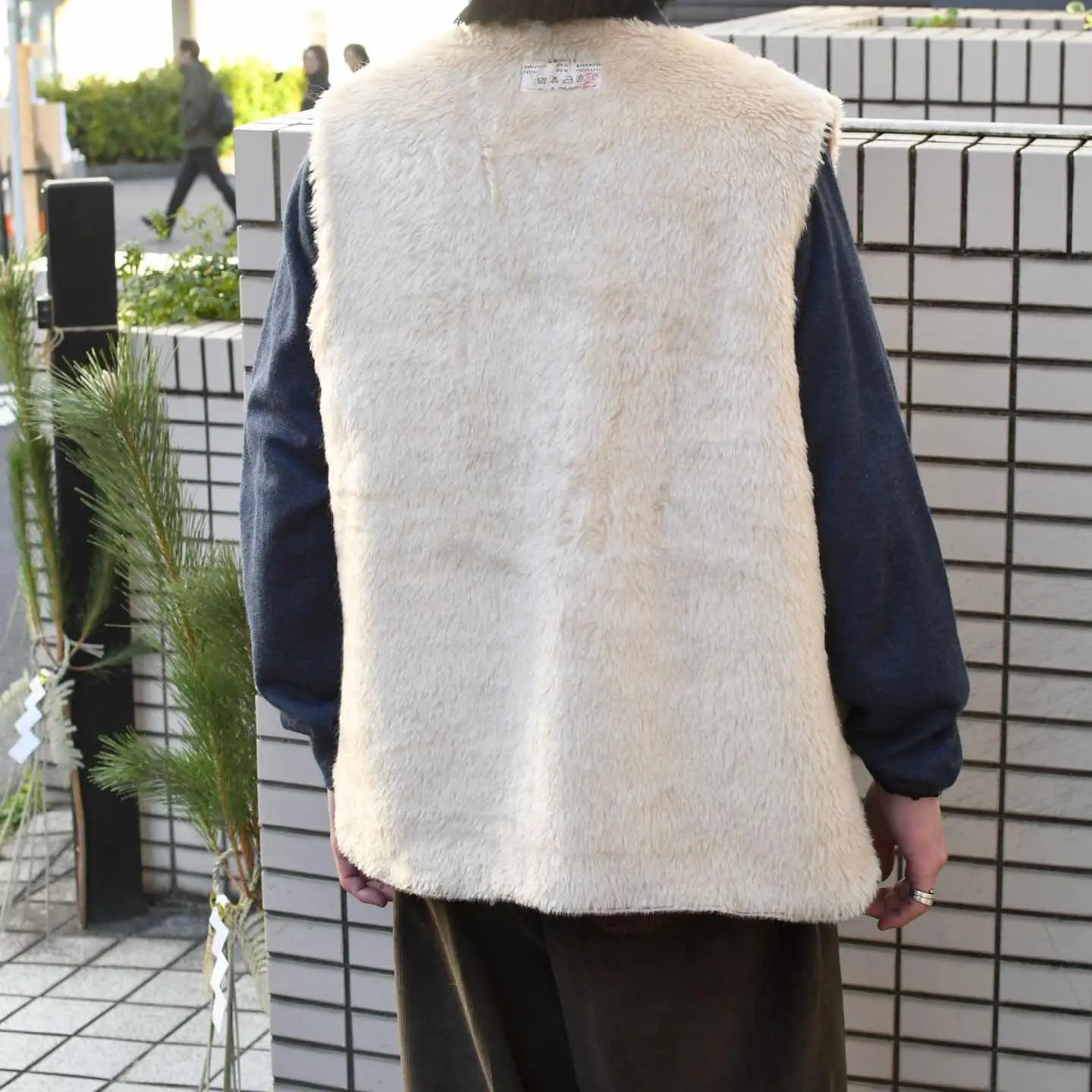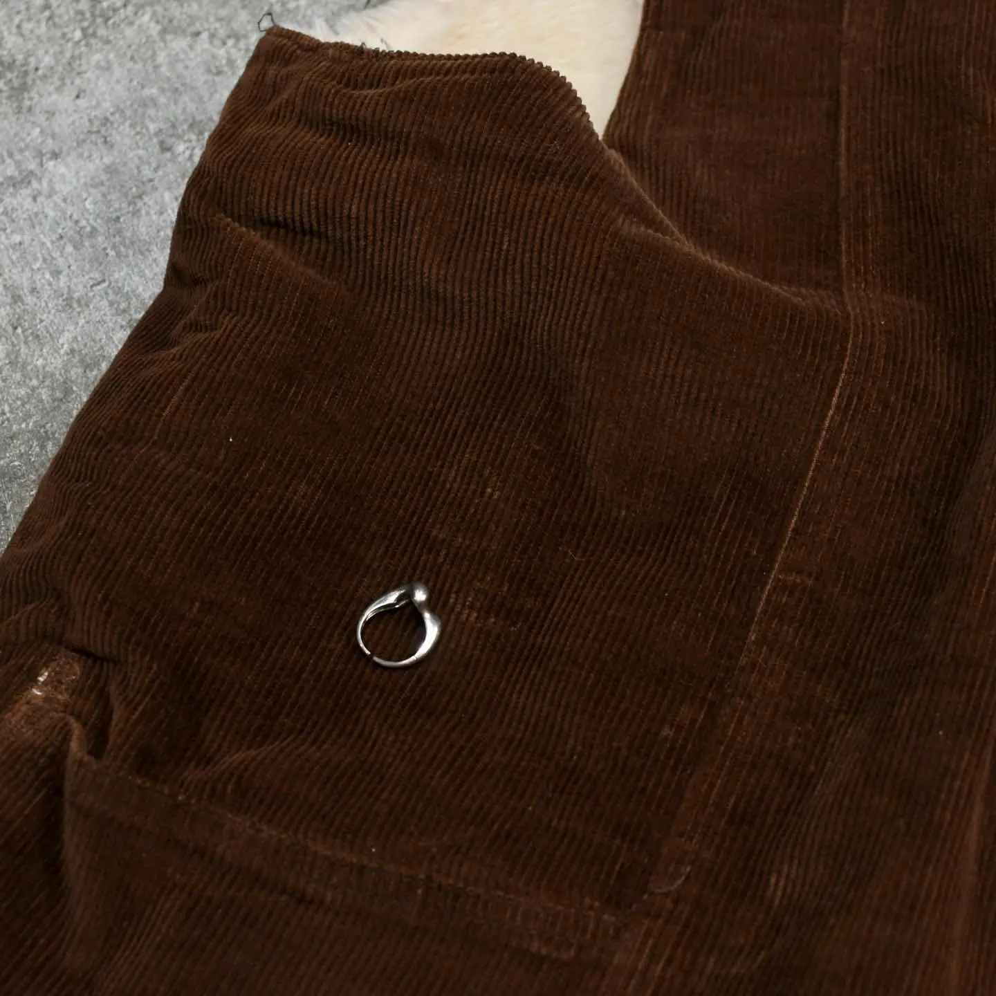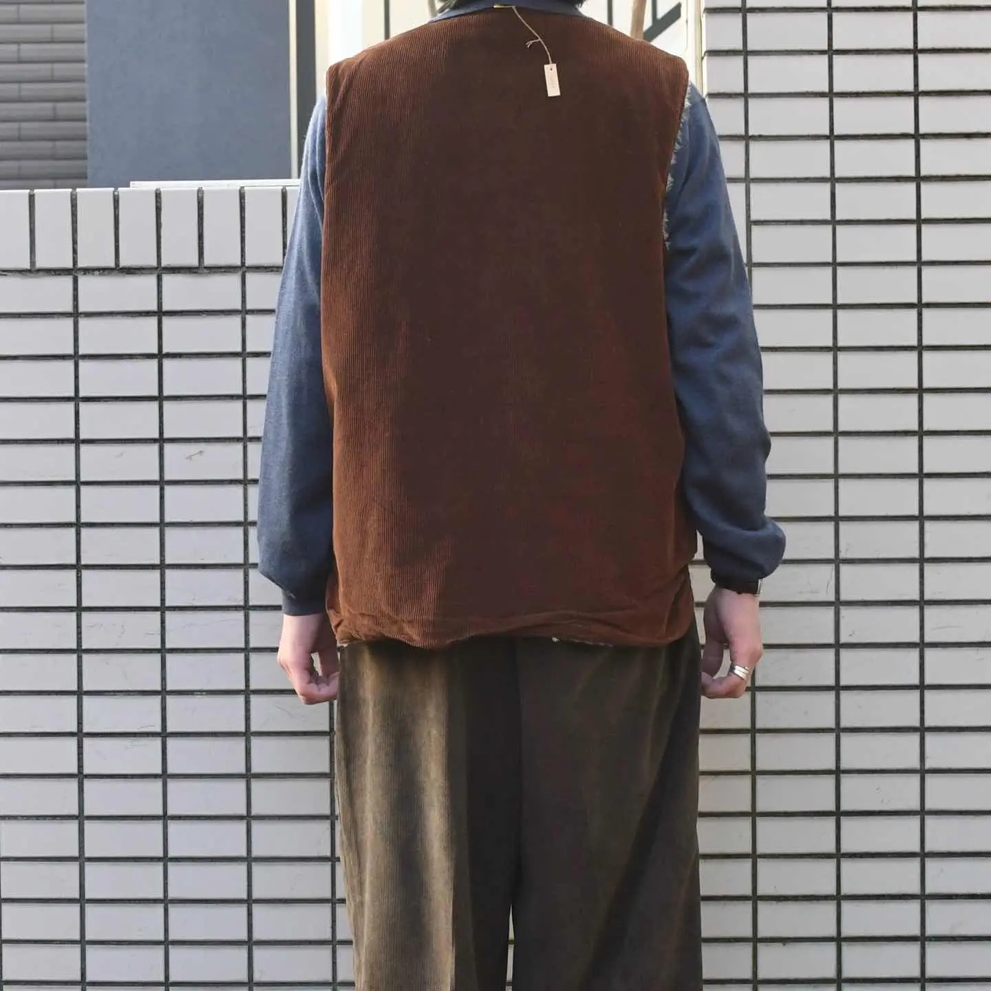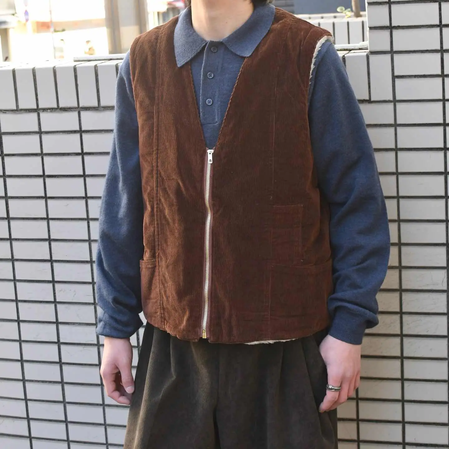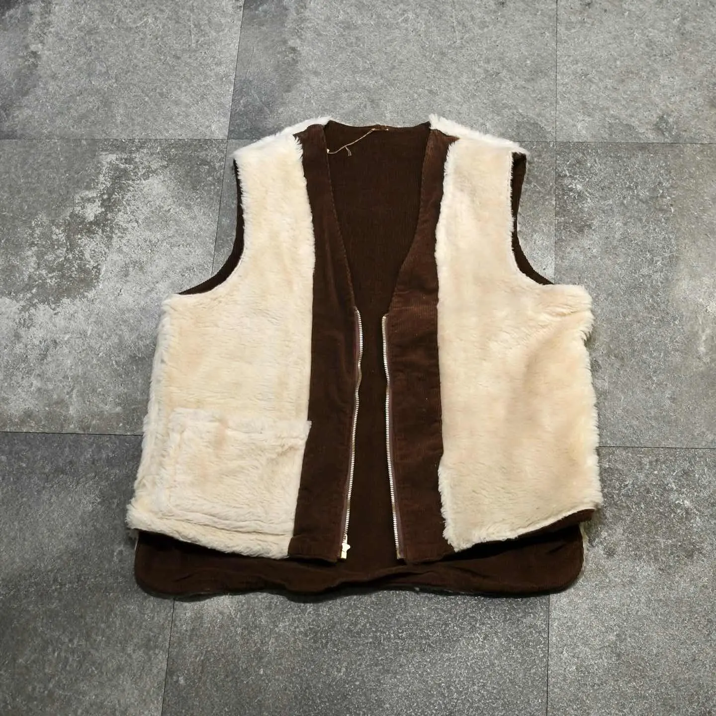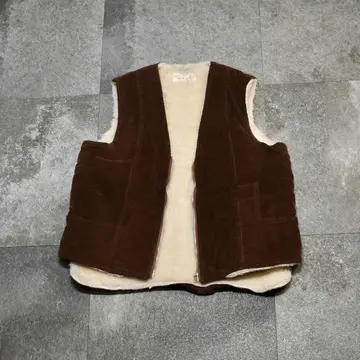 古着 フェイクファー コーデュロイベスト ベスト ワークベスト ブラウン 茶色