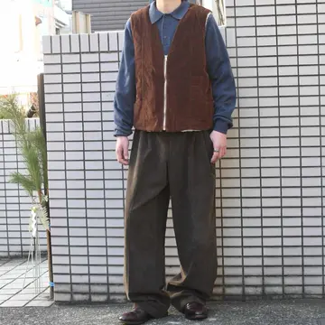 SIZE:54/56 着丈67cm 肩幅41cm 身幅58cm fabric/cotton 着用画像 173cm/58kg 恐らくユーロ圏で使用されていたワークベスト。 ポケットの付き方がやや特徴的で、 尚且つ渋さのあるカラーリング、 コーデにどこか物足りなさを感じた時、 肌寒い時に上からどうでしょう。 同じ色味のコーデュロイシャツやブルゾンの上から、 コーデュロイ生地の面で着るのはもちろんですが、 より個性を求めて裏返して着るのもおすすめ...◎ ※軽度の擦れあり。 ※撮影状況により、実物と多少色が異なる場合が ございます。 ※古着を取り扱っているため、気づかない汚れや ほつれ等がある場合がございます。 ※サイズは着用感で選んでおり、 表記サイズではございません。 表記サイズは説明欄の最初に記載しております。 古着 オーバーサイズ old vintage ヴィンテージ used 80's 90's アメリカ古着 ユーロ古着 POLO RALPH LAUREN Eddie Bauer OLD GAP LANDS' END ランズエンド LLBean エルエルビーン オールドギャップ エディーバウアー ラルフローレン ブルックスブラザーズ Brooks Brothers ユーロワーク などがお好きな方 #vintage #オーバーサイズ #old #used #90s #80s #古着 #ヴィンテージ #アメリカ古着 #ユーロ古着 #LLBean #エルエルビーン #EddieBauer #エディーバウアー #oldgap #オールドギャップ #LANDSEND #ランズエンド #NAUTICA #ノーティカ #ラルフローレン #POLORALPHLAUREN #ブルックスブラザーズ #BrooksBrothers #ベスト #コーデュロイベスト #ワークベスト #ユーロワーク