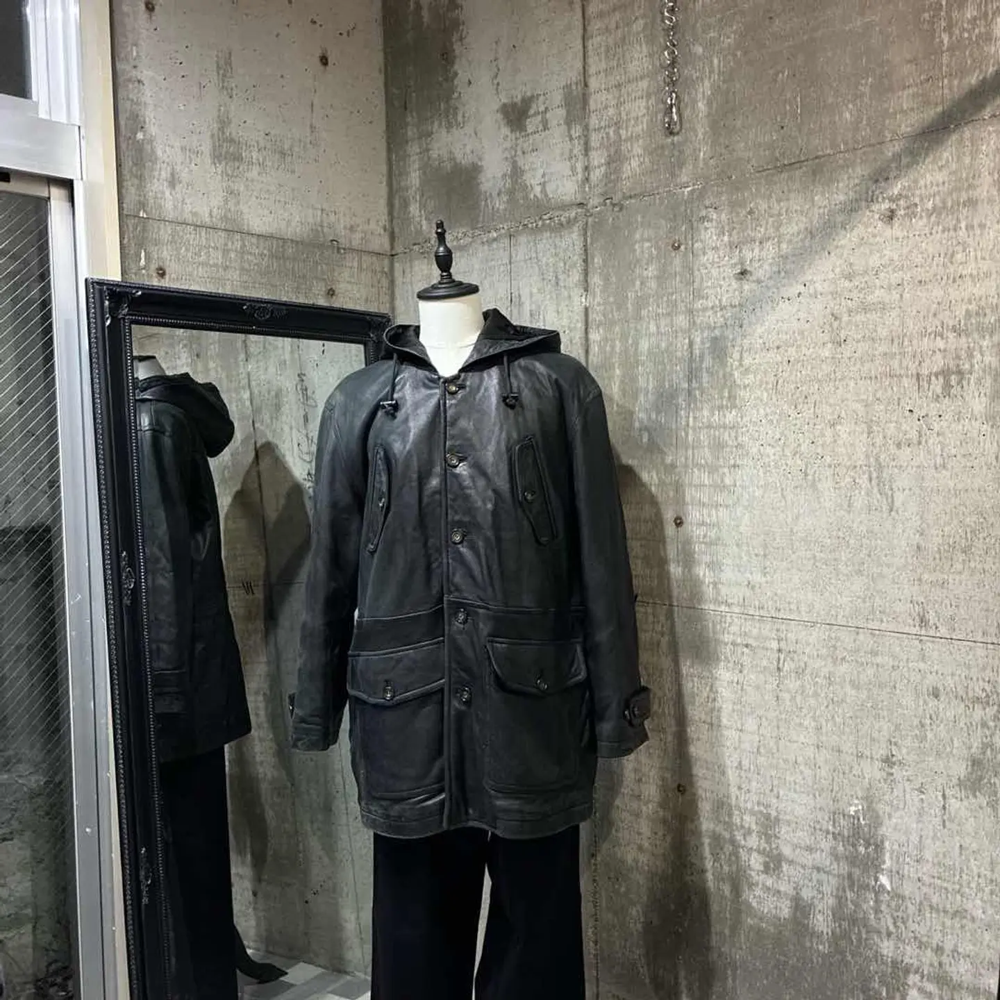 【サイズ】 肩幅 : 42 着丈 : 76 袖丈 : 53 身幅 : 46 【素材】 レザー 中綿 【コンディション】 レザーの使用感、スレあり。 #レザージャケット #フーディー #パーカー #古着