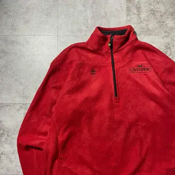 【XL】ティンバーランド ハーフジップ 刺繍企業ロゴ レッド フリーススウェット