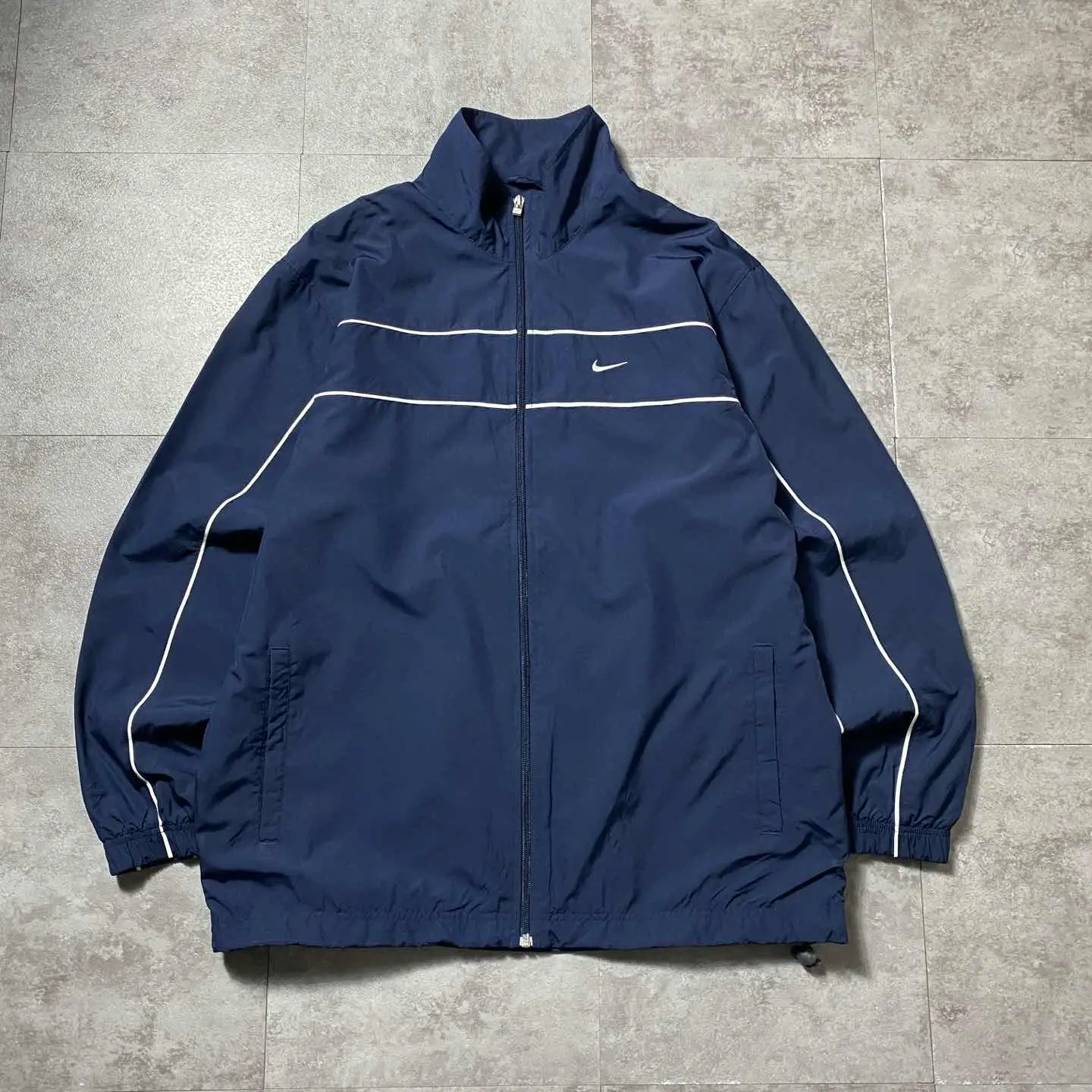 00s ナイキ スウォッシュ 刺繍両面ロゴ ネイビー ナイロンジャケット