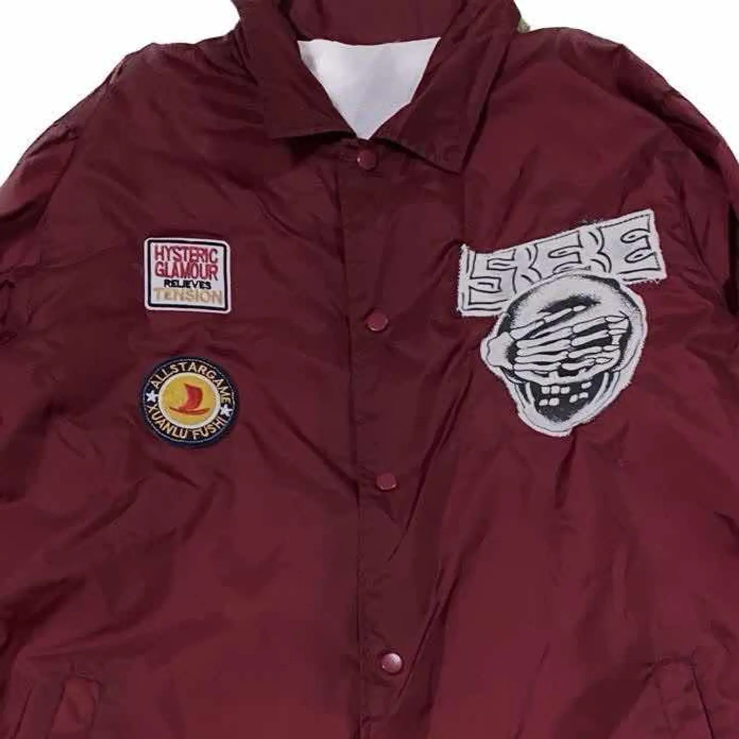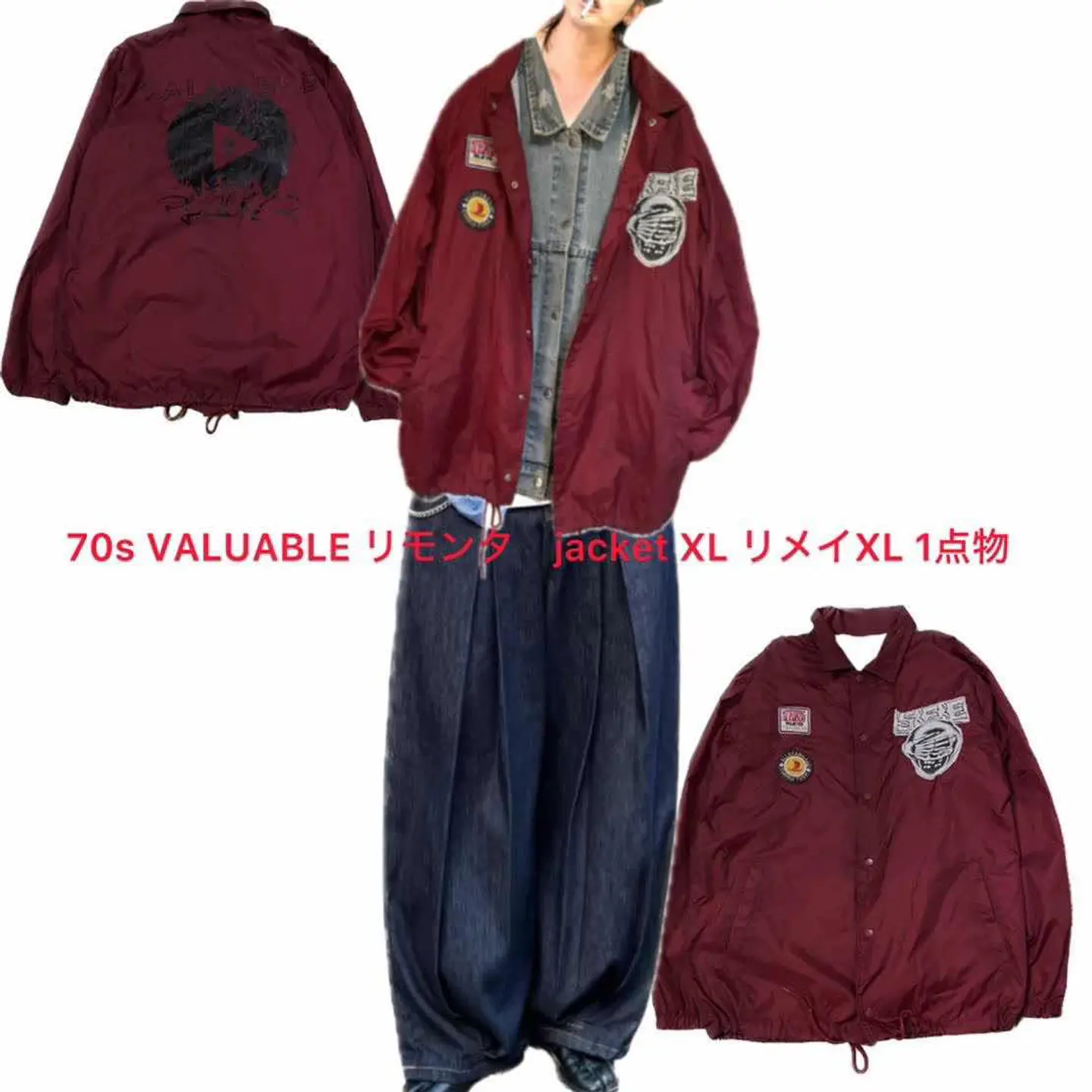 70s VALUABLE リモンタ jacket XL リメイXL 1点物 バックにVALUABLE プリント ※これ、かなりレアな、1着【VALUABLE】77年の、音楽イベント、スタッフのみに、配られたやつ よって、世界に10着しかないし、初めてみました、 おそらくみることは、今後ないです。 だったら、それ、世界に一つにしちゃうか?で、 !!reake!! NIKEの、スケートラインを、手掛ける、デザイナーのTシャツスカル縫い付け、 collectionしてたワッペン縫い付けました、 ヒステリックグラマーのまで、ケチらずぬいつけてます、 さらに、リモンタなんで、年中いけます、理由かんたん、オーバーサイズなんで、着画参考に、Fデニムジャケットさらにその下に、2枚インナーで、レイヤード、暖かくなりゃ、Tシャツに、はおる、それだけで、世界に1つのこのジャケットがあなたのおしゃれをアップデートするのは間違いないです。ぜひお試しあれ!! 【カラー】 ダークボルドー 写真通り ▷size◁ 平置き片面採寸【㎝表記】 表記size XL位 着丈77 身幅60 肩幅50DS 袖丈64 ※多少の誤差はご容赦下さい 【着用画像データ】 身長170㎝普通体型の私がゆるだぼ ▷material◁ 世界最高級リモンタナイロンジャケット 年中活躍 ▷condition◁ 綺麗です!! ※入念にチェックは、しておりますが、vintage/usedの特性ご理解下さい
