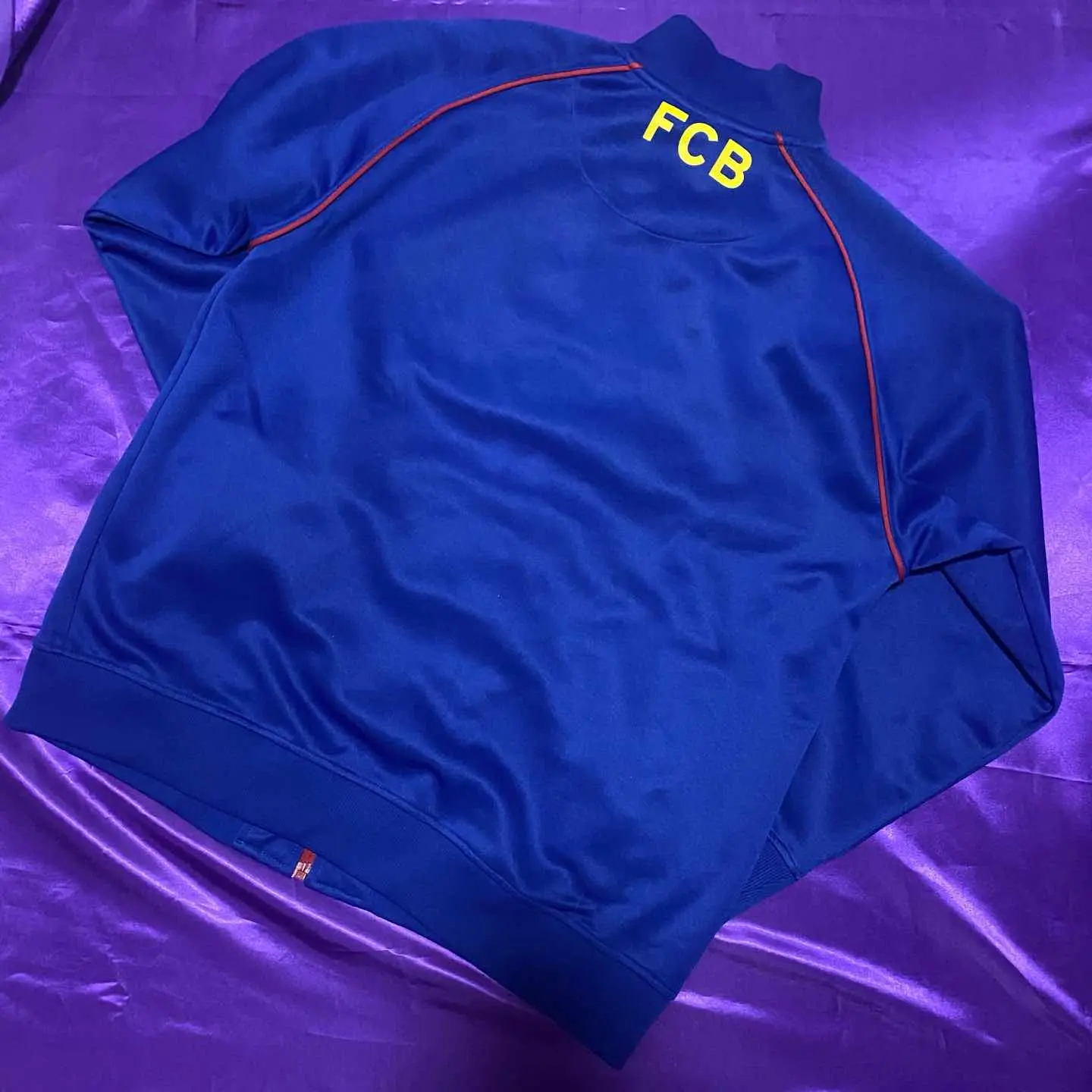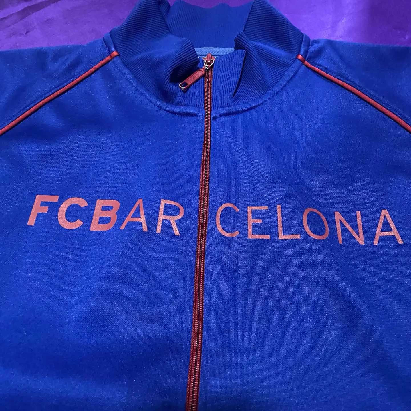 言わずと知れたスペインの有名クラブバルセロナのトラックジャケット。 人生で一回はエル・クラシコを生で見てみたいものですね。 サッカーシャツも可愛いですがトラック系もなかなか可愛いものが多いので集めていけたらと思ってます。 見るのはプレミアリーグがメインになってしまっていますが有名クラブのアイテム見つけるとテンション上がります。 サッカー好きな方もそうでない方もデザインに気に入ったなら買いです。 着丈60.5 身幅111 裄丈77.5 model:163cm