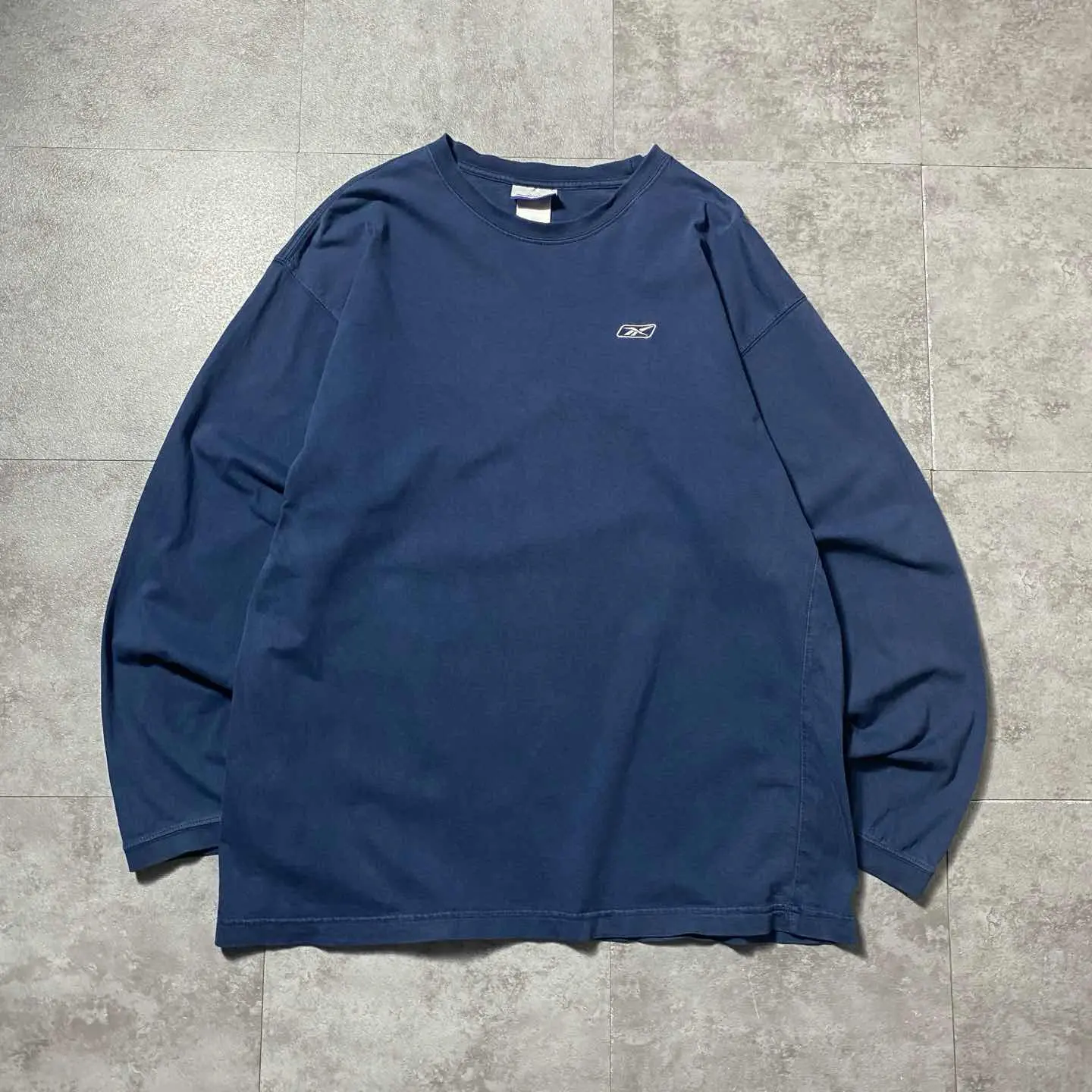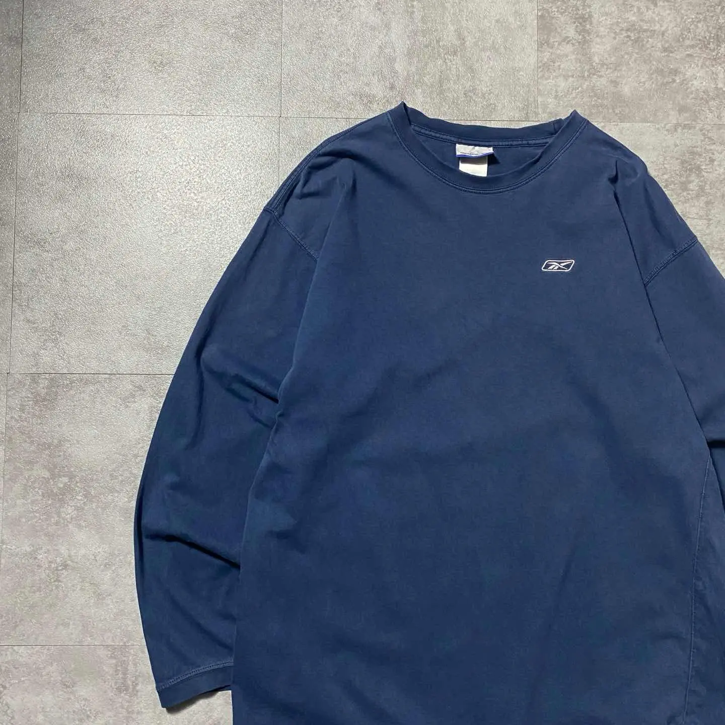 00s リーボック 刺繍ワンポイント ベクターロゴ ネイビー Tシャツ ロンT