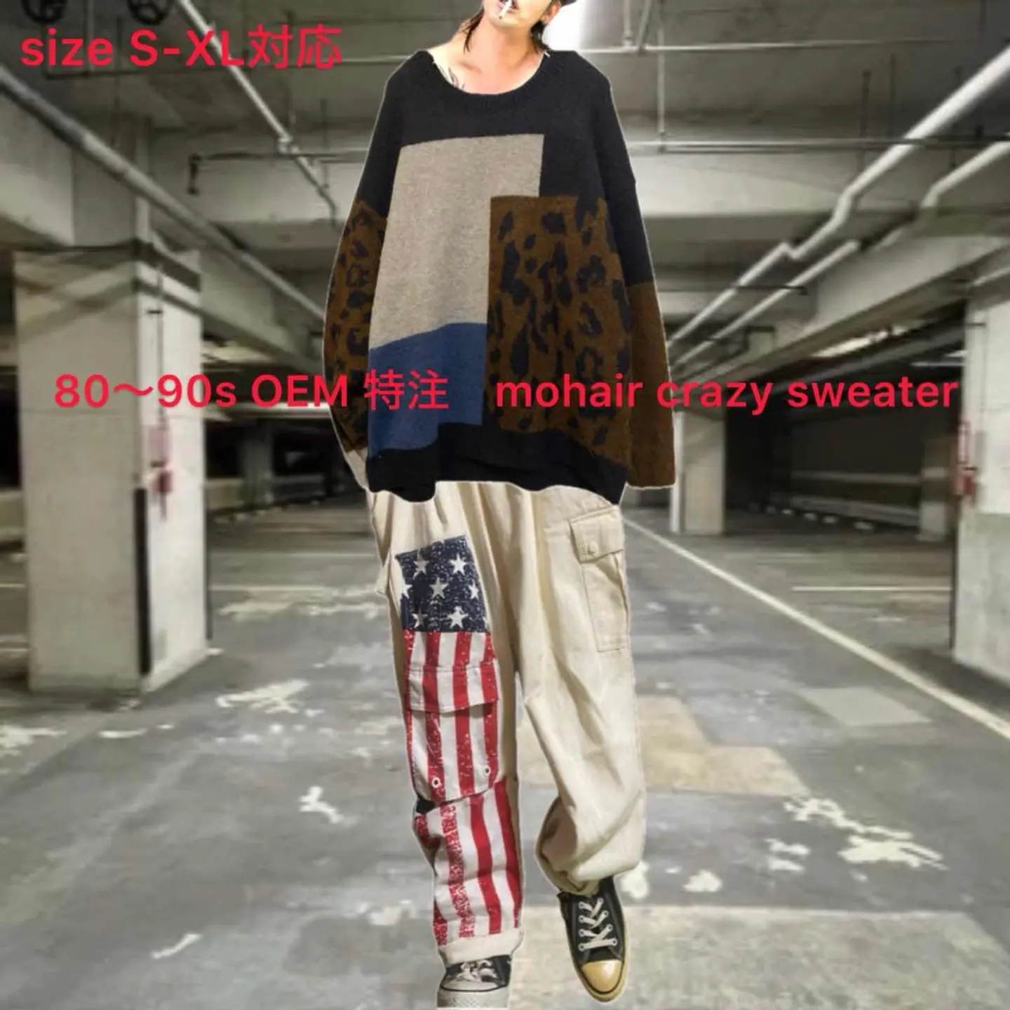 80~90s OEM 特注mohair crazy sweater XL 着回し抜群、リアルピュアウール【mohair】を贅沢につかい、パネル、crazyパターンが、お洒落すぎる一着、他と差がつくのに色気ある、セーター、 さらに、コーデ参照!! リメイク星条旗ボトムで、 こなれ感、 また、いやいや、まだまだ寒いしって方、任せて下さい、ボックスジャケット羽織る、完了!センスしかない!! 【↓一読この奇跡の商品が美品です^_^】 80-90s オリジナリティに拘り、他とは違うを、追求した時代と、セレクト時代と、古着時代が、入り、一番ファッションが熱かった時代の OEM 外注特注商品 あなただけの、特別な一着!! ▷color◁ 写真通り ※ブラウザで異なる場合ありますがかなり実物には、近づけてます、 ▷size◁ 平置き片面採寸【㎝表記】 表記size F onesize 着丈/80 身幅/68 肩幅/68セットインbox 80s確定 袖丈 /65 DSは袖はハンガー採寸 ※多少の誤差は理解下さい 170/Mジャスト体型の私が着て、✔️参考に ジャスト オーバーサイズ ビックサイズ✔︎ 【素材】 mohair 最高級ウール 【状態】 新品同様、びびります、ピュアウールだけど、高級だから、洗えました! 検品、洗濯、検品で、3回チェックして発送しますので、ご安心して、お買い求め下さい!!