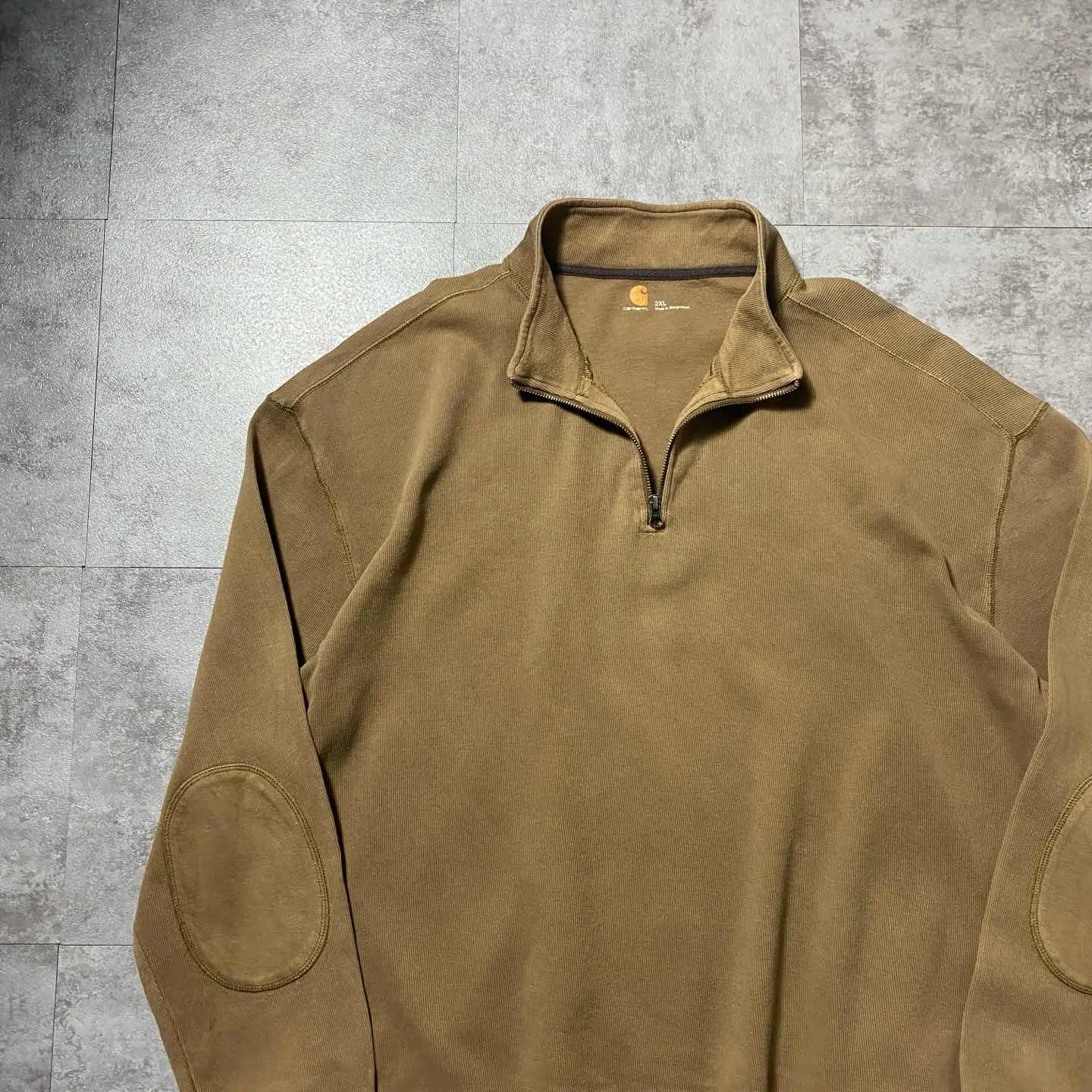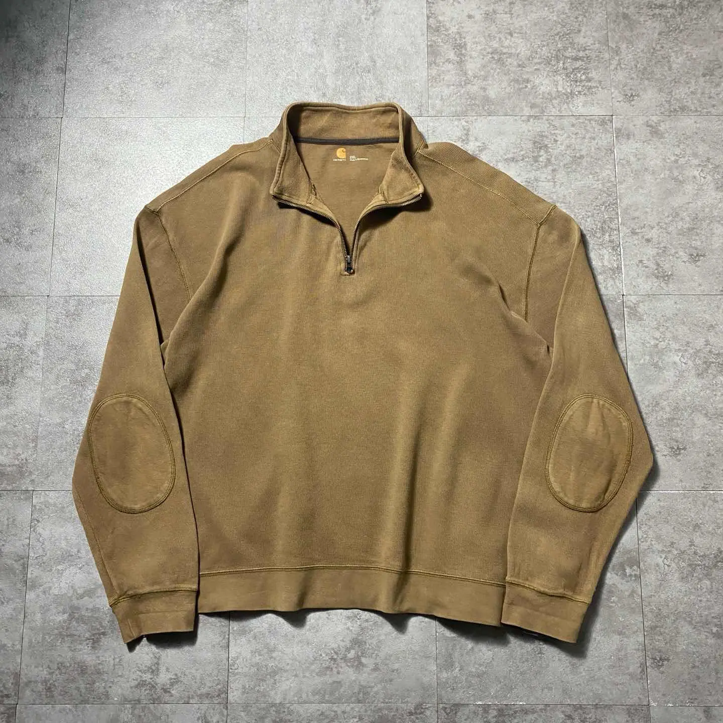carhartt ハーフジップ エルボーパッチ ブラウン スウェット トレーナーん