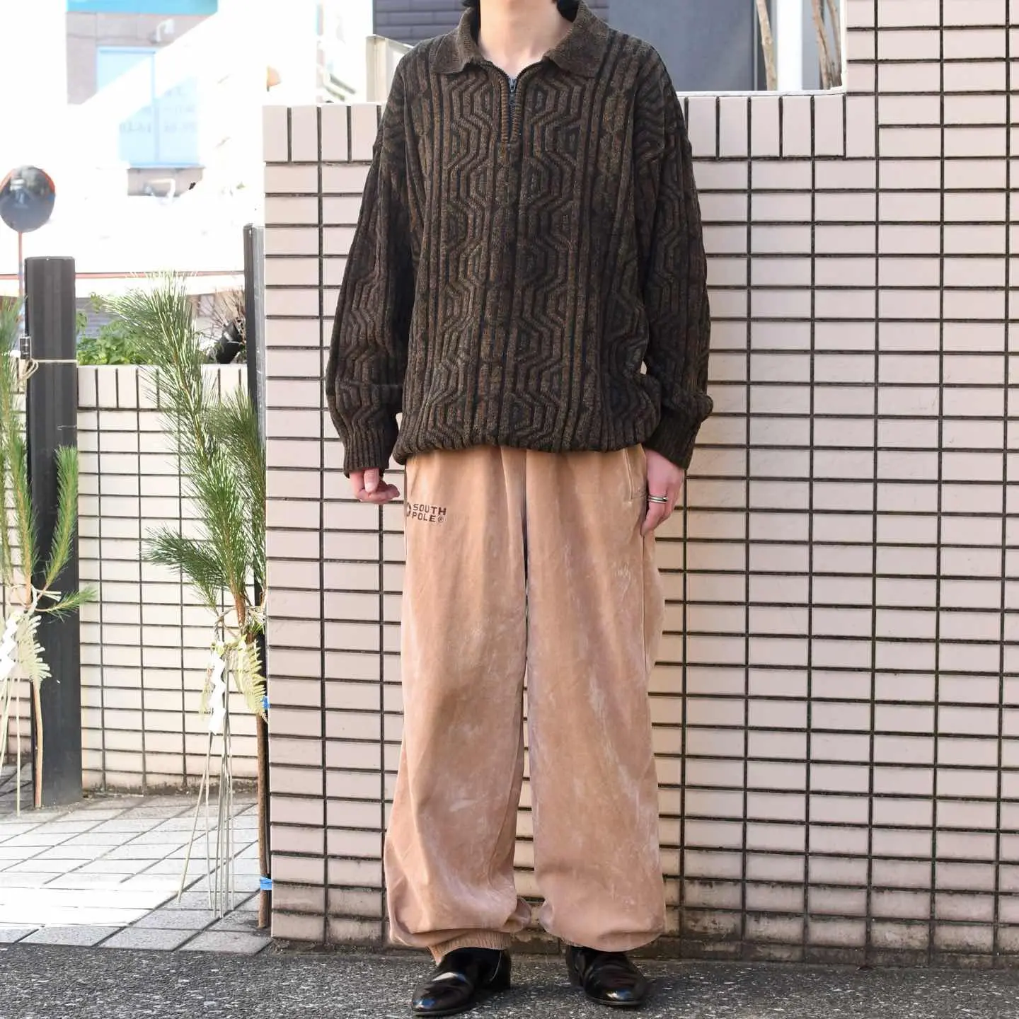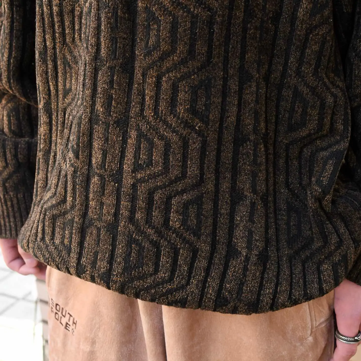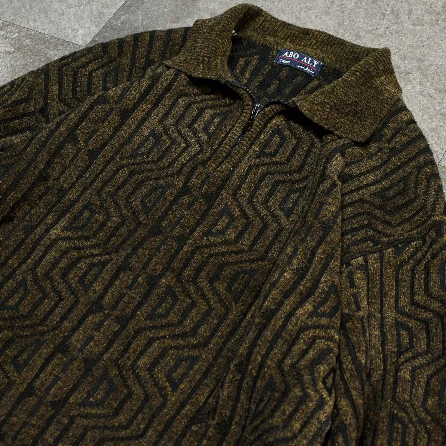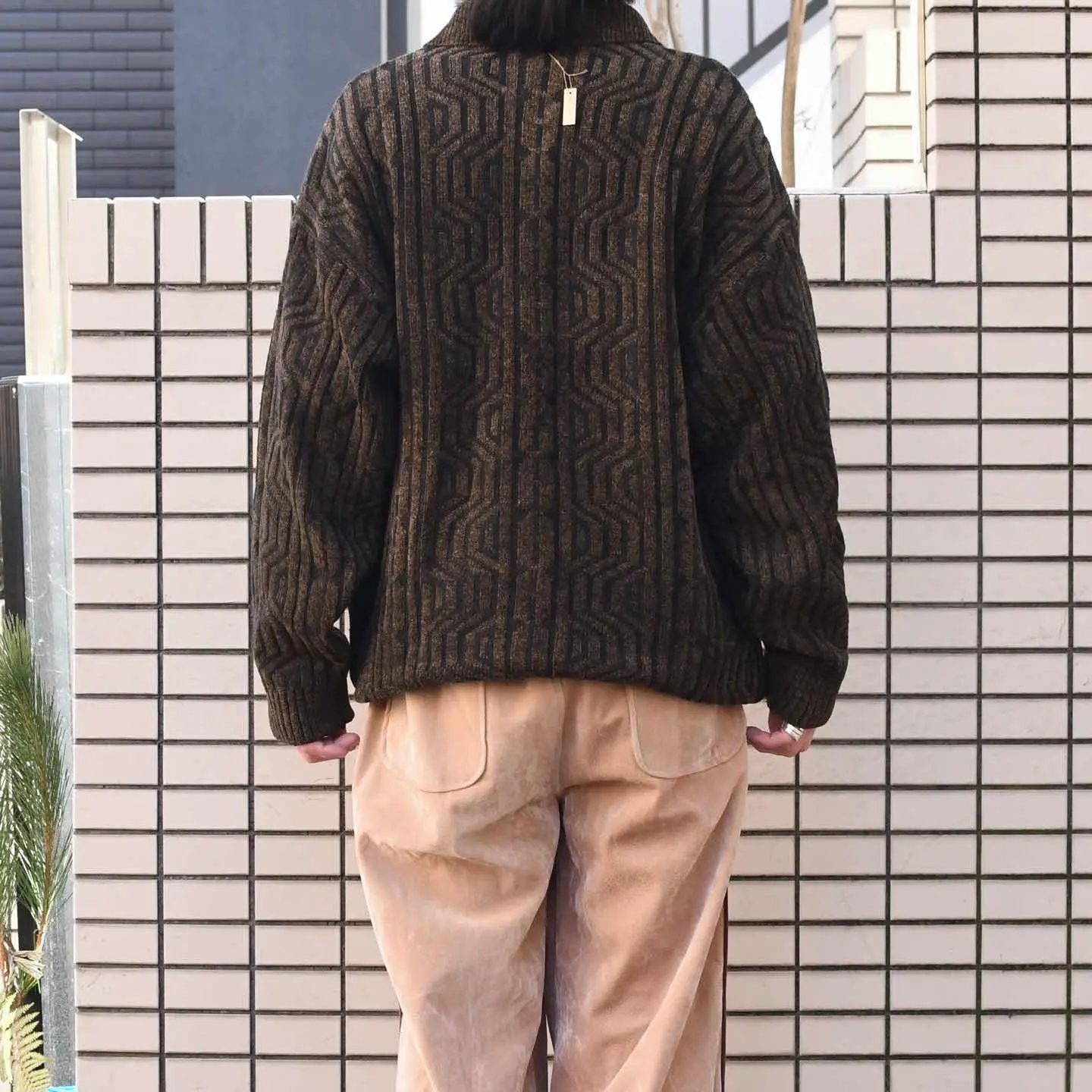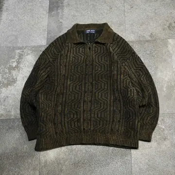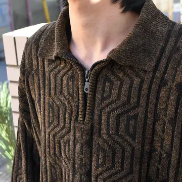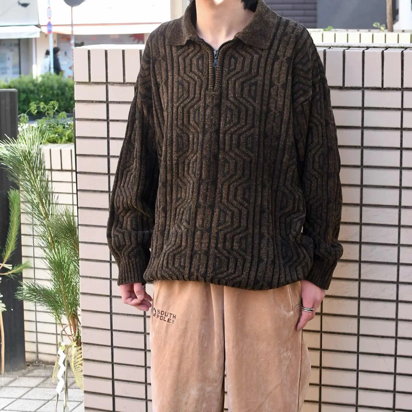 古着 デザインニット モールニット ブラウン ハーフジップニット ニットポロ