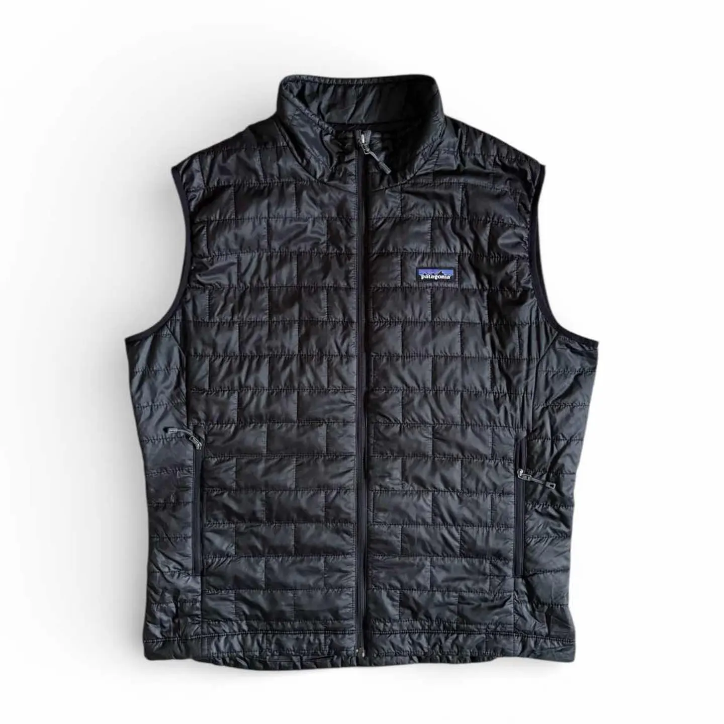 ○商品説明 patagonia ナノパフベスト。 軽量ながら保温性に優れ、アウトドアから タウンユースまで幅広く活躍するアイテムです。 特徴的なブロック型のキルトパターンが 中綿のズレを防ぎ、耐久性を高めております。 秋口や春先はアウターとして、真冬はシェルの下の ミッドレイヤー(中間着)としてオールシーズン重宝します。 ブラックカラーなので使い勝手は抜群かと。 ドローコードも付いておりますので絞って お好みのシルエットで着用していただけます。 コーディネートの幅を広げる一着を是非。 ○サイズ 表記L 平置き ・肩幅45cm ・身幅60cm ・着丈69cm ○商品の状態 B A:使用感がほとんどなく、汚れやシミもなし B:多少使用感はあるが、汚れやシミも少ない C:使用感があり、汚れやシミがある D:使用感があり、大きな汚れや破れあり ○色 ブラック #patagonia#パタゴニア#NanoPuffvest#ナノパフ#ベスト