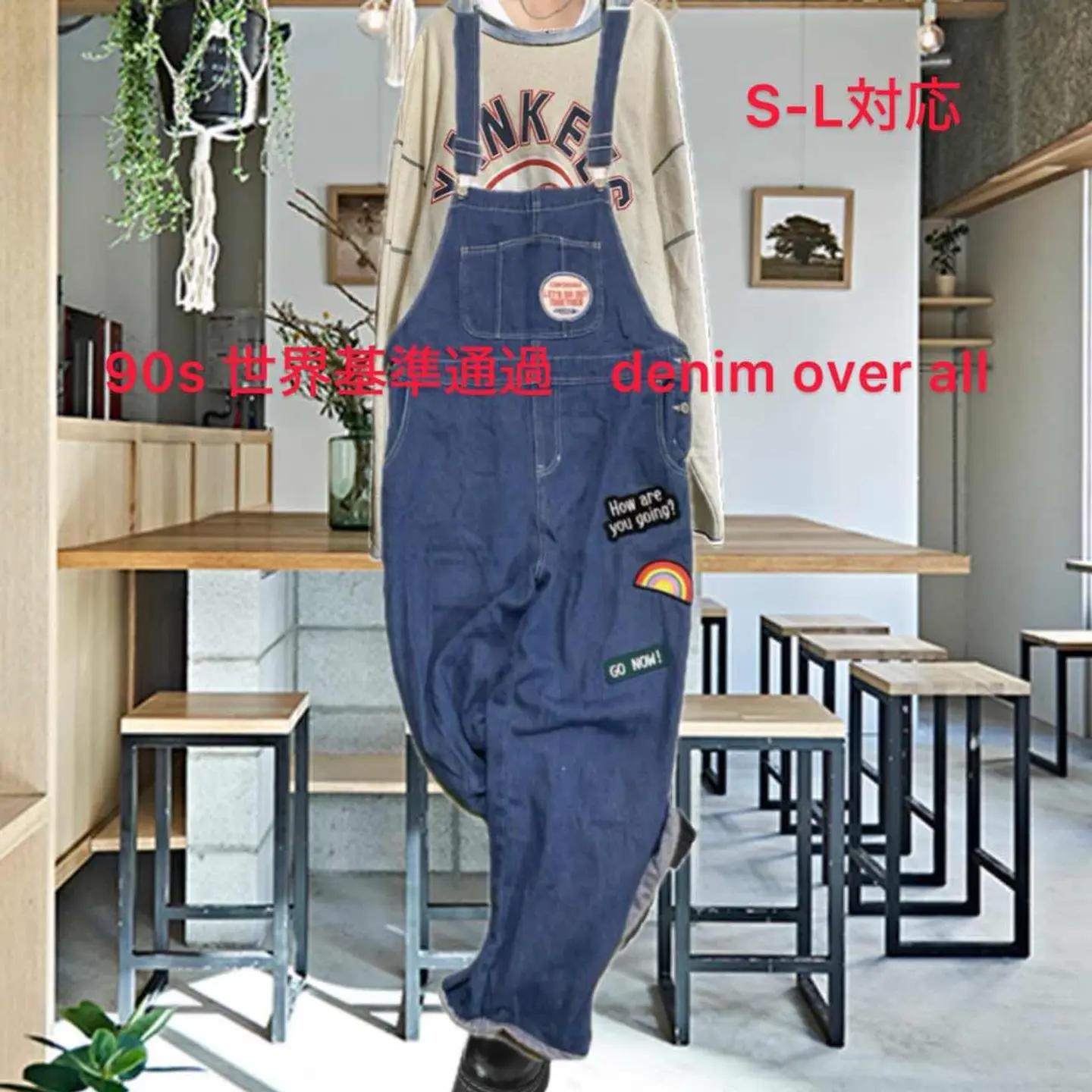 90s 世界基準通過 ワッペン デニム オーバーオール 美品