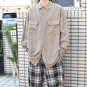 SIZE:42/44 着丈84cm 肩幅54cm 身幅65cm 袖丈67cm fabric/poly 着用画像 173cm/58kg コーデュロイのような、やや縦畝のある フェイクスウェード生地に惹かれ。 フェイクスウェード特有の上品で大人びた雰囲気は 秋冬のキレイめなアウターとの相性も良いですし、 春先にはさらりと一枚で着るのもどうでしょう。 シンプルだからこそ、パンツで遊んでみたり セットアップのインナーとして仕込んでみたり、 何かと使い勝手の良いアイテム、 それを自分が好きな落ち着きのあるカラーで 提案いたします。 ※色味に関しましては、物撮りを参考に お願いいたします。 ※撮影状況により、実物と多少色が異なる場合が ございます。 ※古着を取り扱っているため、気づかない汚れや ほつれ等がある場合がございます。 ※サイズは着用感で選んでおり、 表記サイズではございません。 表記サイズは説明欄の最初に記載しております。 old vintage ヴィンテージ used 80's 90's アメリカ古着 ユーロ古着 POLO RALPH LAUREN Eddie Bauer OLD GAP LANDS' END ランズエンド LLBean エルエルビーン オールドギャップ エディーバウアー ラルフローレン ブルックスブラザーズ Brooks Brothers シャツ などがお好きな方 #vintage #オーバーサイズ #old #used #90s #80s #古着 #ヴィンテージ #アメリカ古着 #ユーロ古着 #LLBean #エルエルビーン #EddieBauer #エディーバウアー #oldgap #オールドギャップ #LANDSEND #ランズエンド #NAUTICA #ノーティカ #ラルフローレン #POLORALPHLAUREN #ブルックスブラザーズ #BrooksBrothers #フェイクスウェードシャツ #長袖シャツ #シャツ