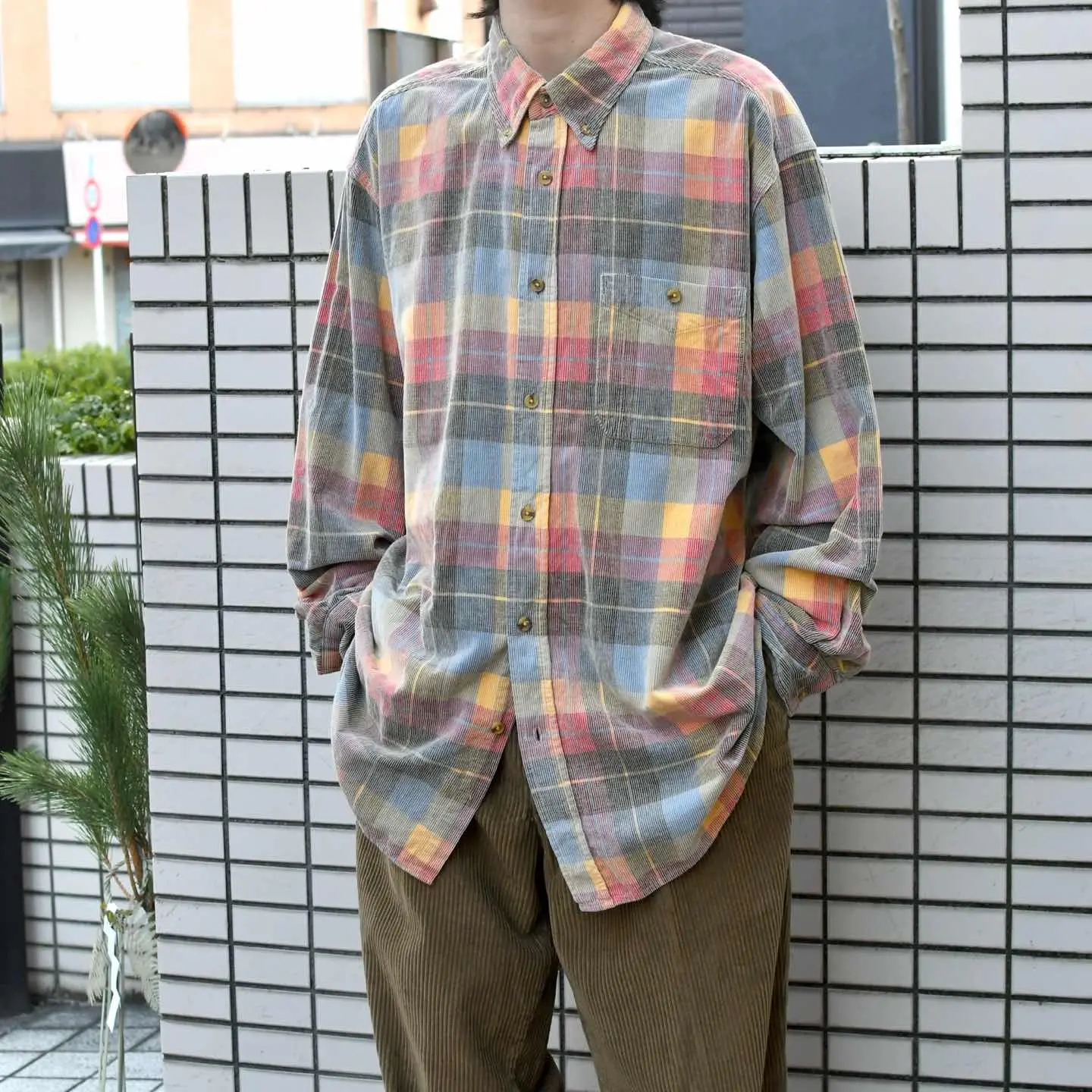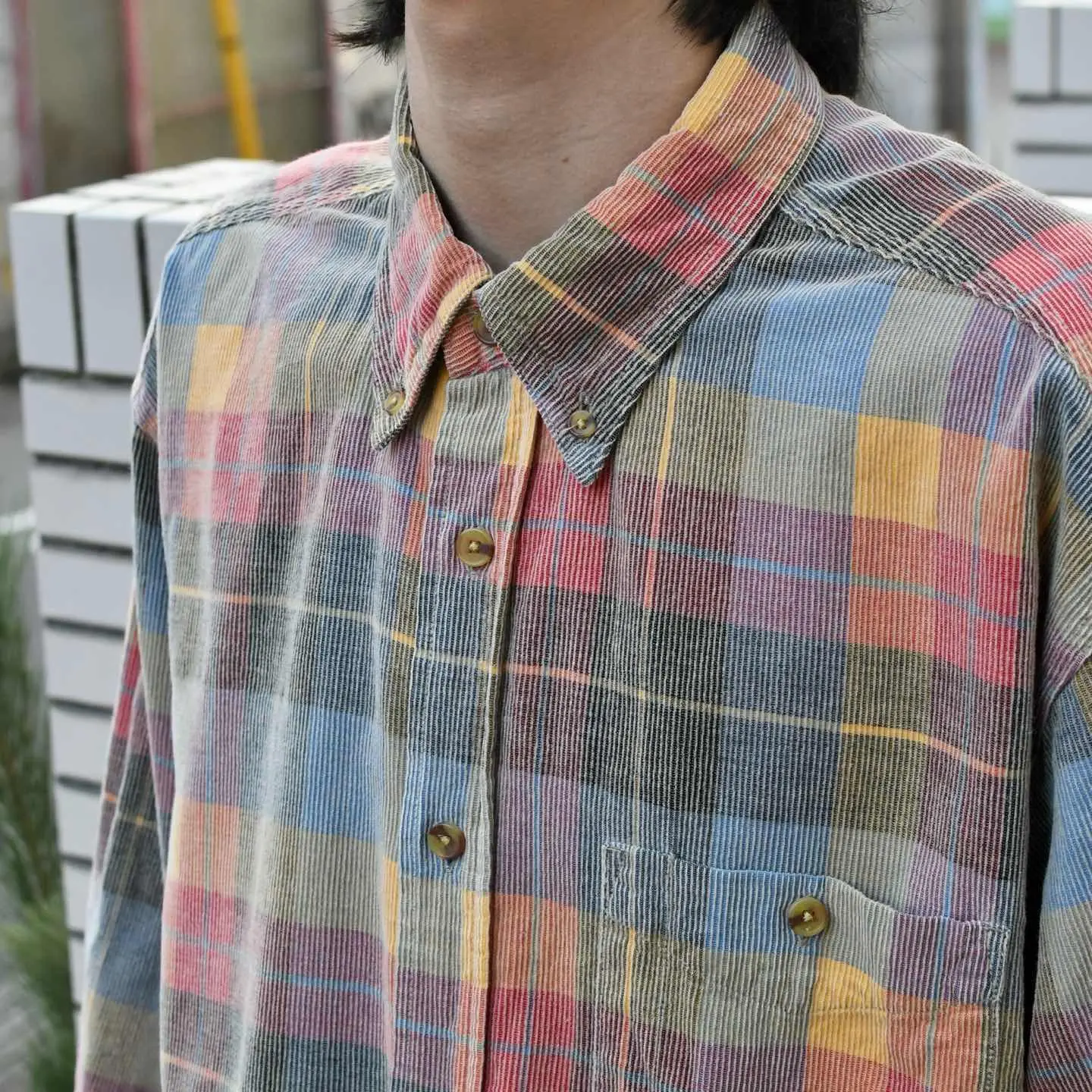 古着 ORVIS コーデュロイシャツ チェックシャツ ボタンダウンシャツ