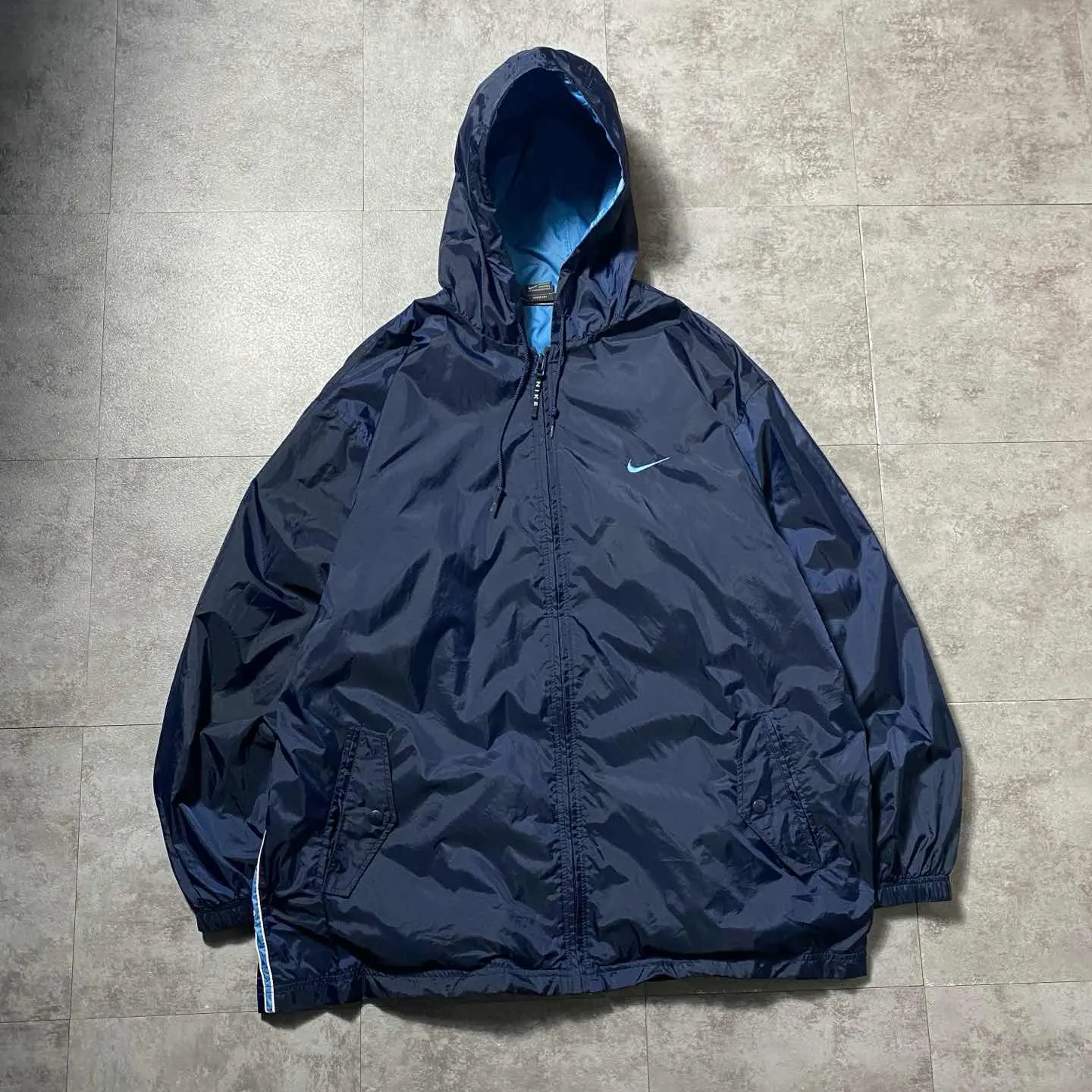 90s NIKE スウォッシュ 刺繍ワンポイント バックロゴ ナイロンジャケット