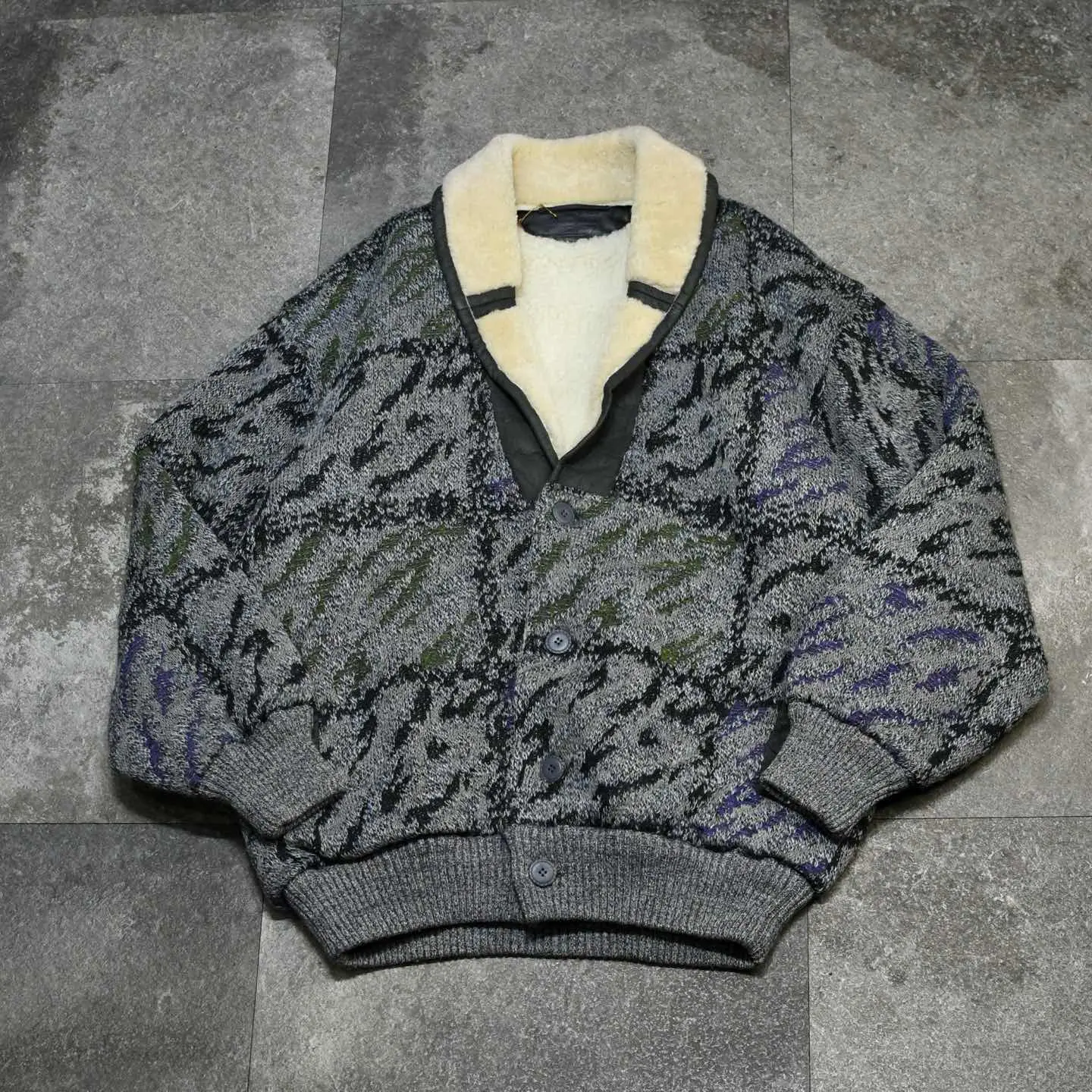 古着 ムートン ニット 切り替え ニットブルゾン ショールカラー ブルゾン