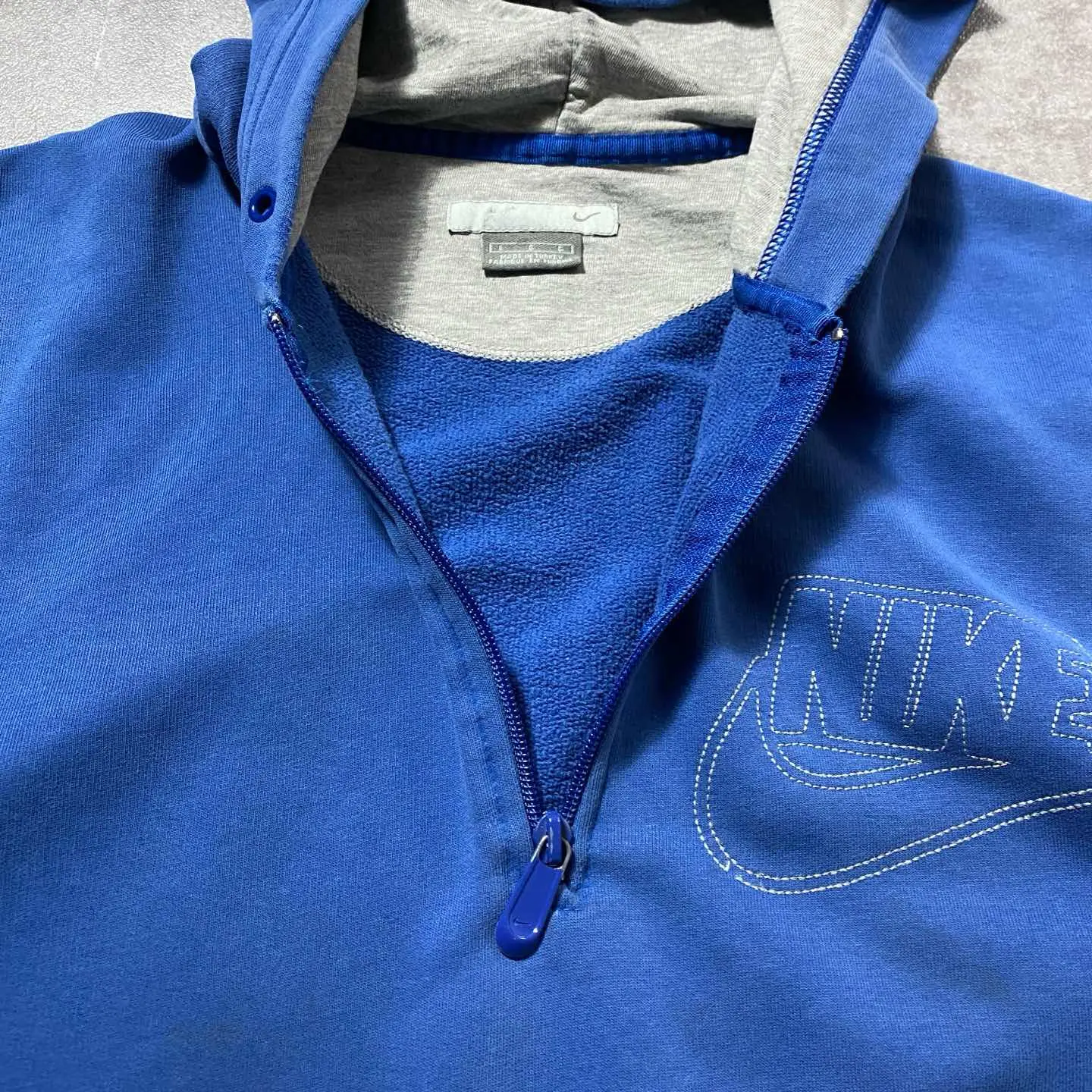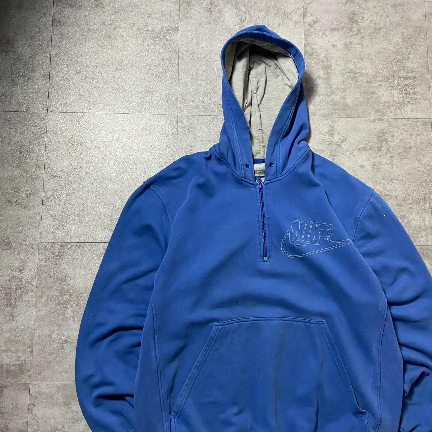 00's ナイキ スウォッシュ 刺繍ロゴ ハーフジップ グッドダメージ パーカー