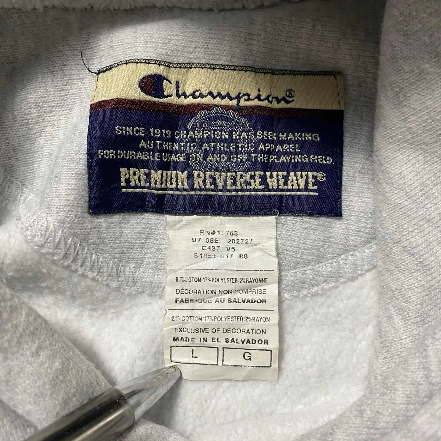 00s チャンピオン リバースウィーブ アーム&フードロゴ グレー パーカー