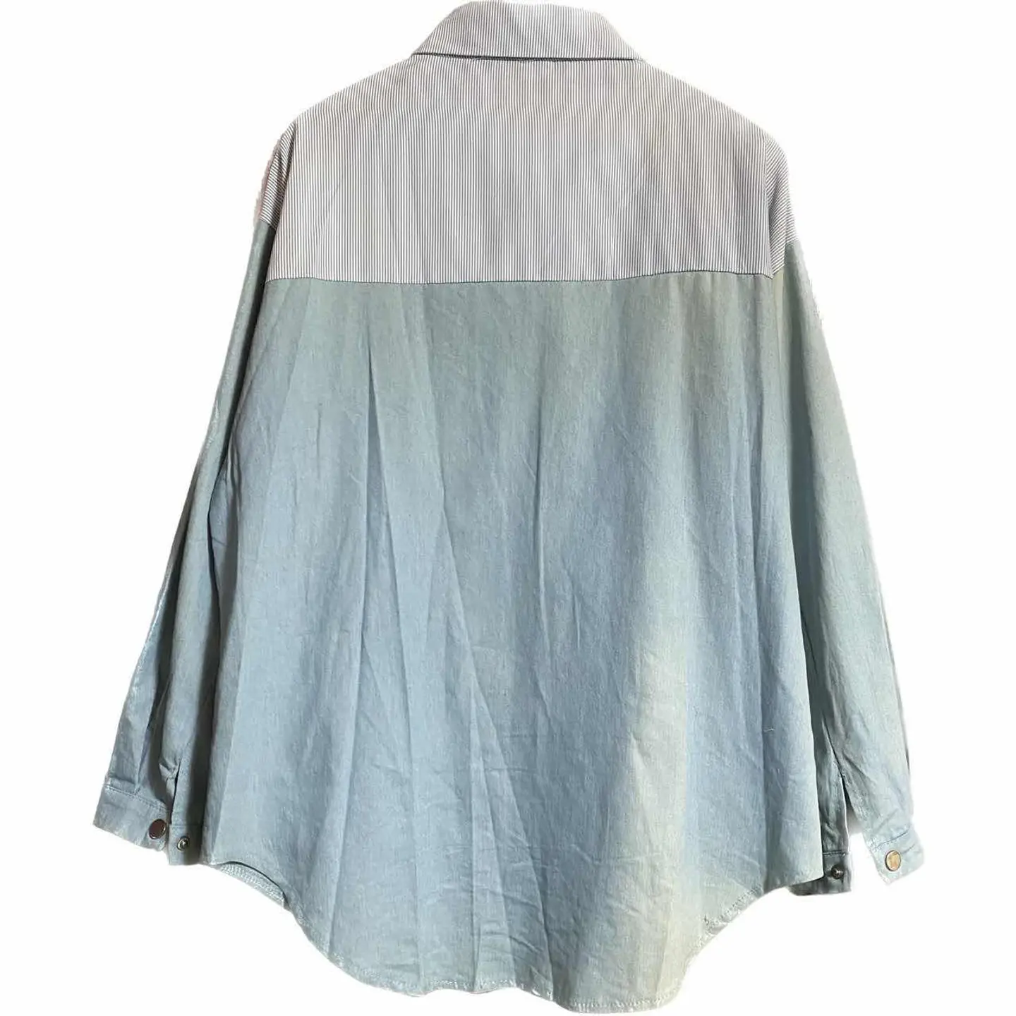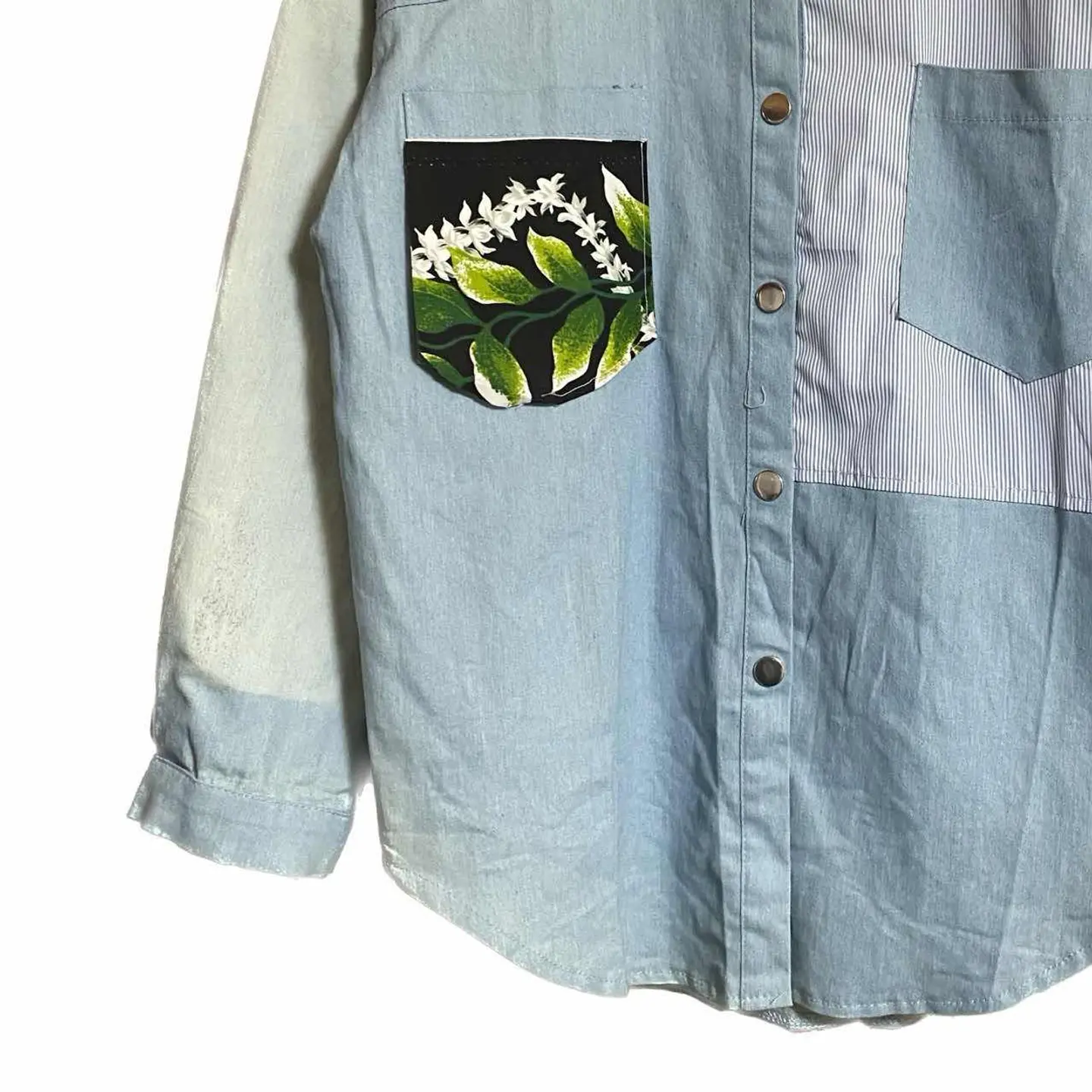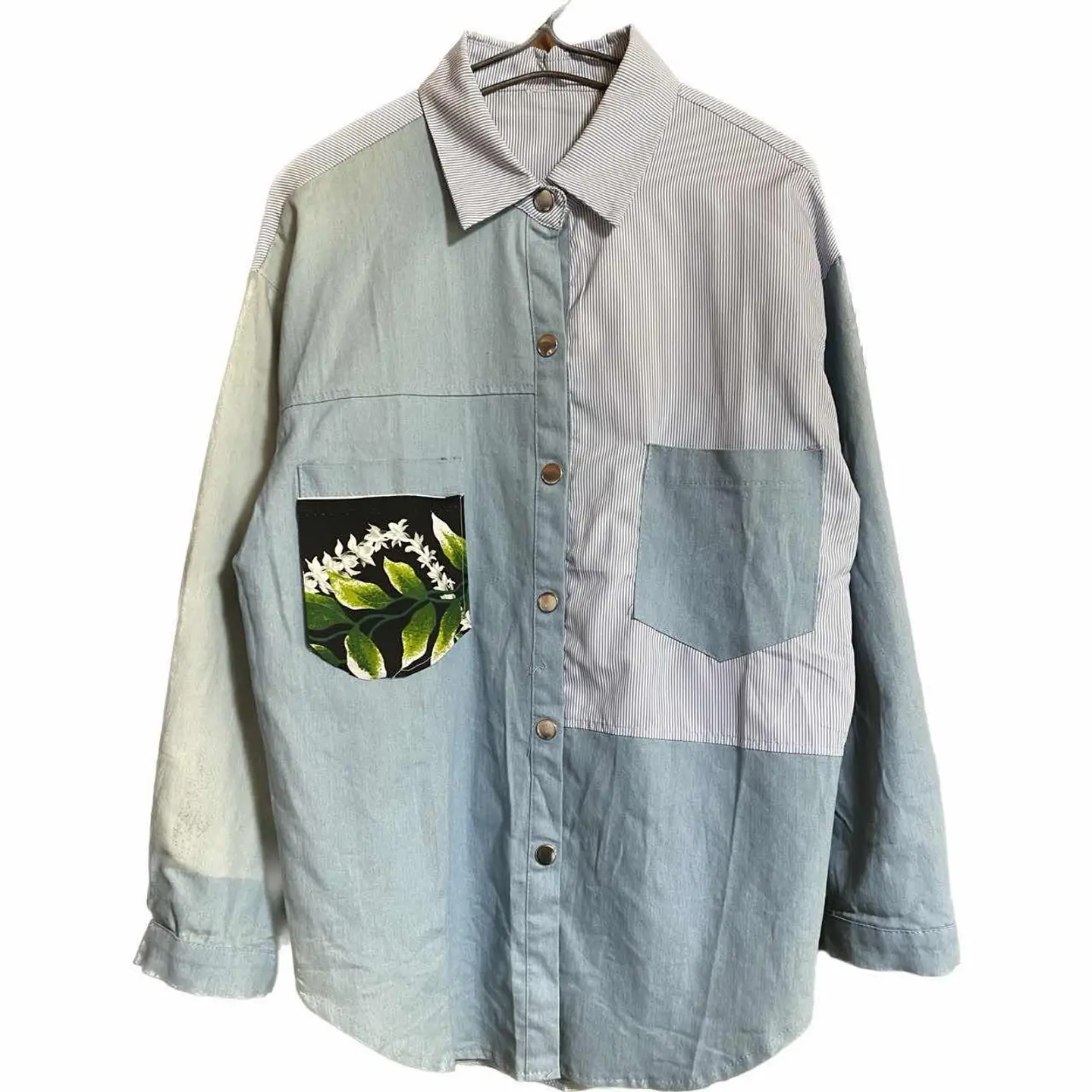 vinvage remake KHAOS pattern シャツ L フェードUTILITY 一撃でインパクトあるのに行き過ぎないこなれたコーデ!! どんなボトムむ、一気にお洒落に決まるシャツを、作りました^_^ KHAOS【混沌】 pattern crazyは、イカれた patternから、きますが、 KHAOSは、様々な、ジャンルが、入り混じるの意味、 計算し尽くしてパネルパターンにしてますが、 フェード加工ダンガリー フォーマルな、ストライプを、武骨と、フォーマルを融合するから。どちらのスタンスでも使えるんです。 また、世界に一つのシャツな、どの角度でも、印象違うように、計算された、パーフェクトな1着となります、 メインでも。インナーでも活躍する、UTILITY風仕上げシャツです^_^ ▷color◁ 写真通り ※ブラウザで異なる場合ありますがかなり実物には、近づけてます、 ▷size◁ 平置き片面採寸【㎝表記】 表記size Lに。設定、 着丈/74 身幅/53 肩幅/54DS 袖丈 /62DS DSは袖はハンガー採寸 ※多少の誤差は理解下さい 170/Mジャスト体型の私が着て、✔️参考に ジャスト オーバーサイズ✔︎ ビックサイズ 【素材】 70s ミリタリーダンガリー ※フェード加工 60s チンストフォーマルシャツ ポケット 00sハワイアン material 【状態】 極上リメイク!!最強 検品、洗濯、検品で、3回チェックして発送しますので、ご安心して、お買い求め下さい!!