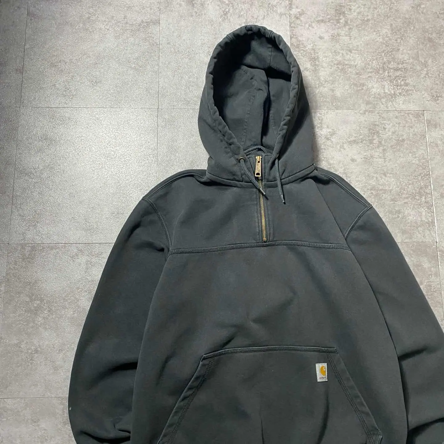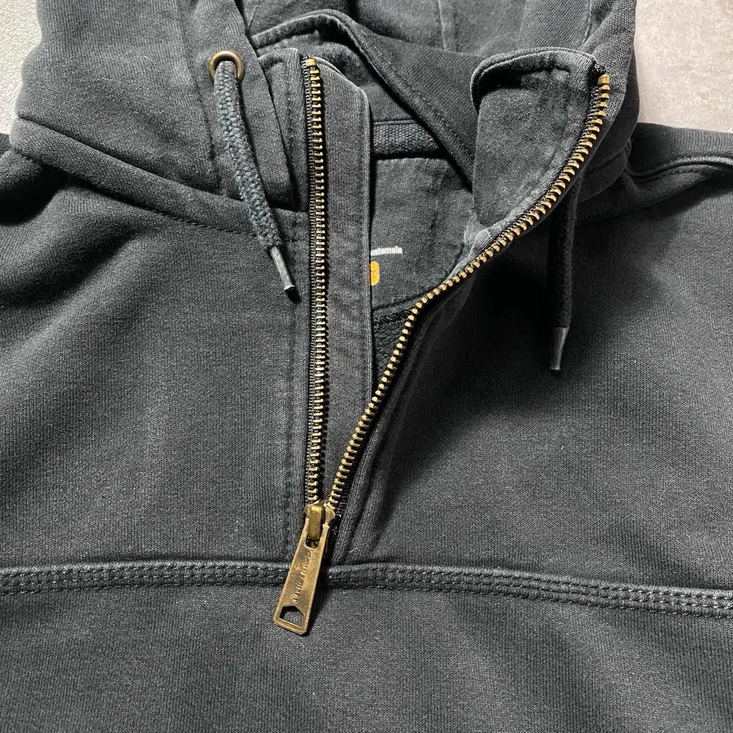 carhartt カーハート ハーフジップ 刺繍企業ロゴ ヘビーオンス ダメージ パーカー