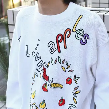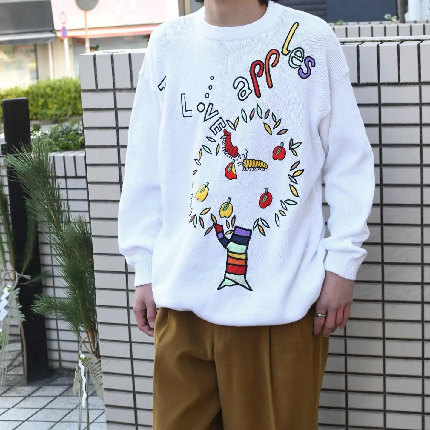 古着 刺繍 コットンニット ニット デザインニット ホワイト 白