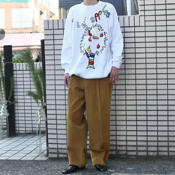 古着 ベロア スラックス タックパンツ ワイドパンツ マスタード ベロアパンツ